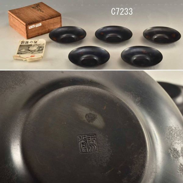 C07233 玉川堂 槌目打銅製托子 5枚:真作。
