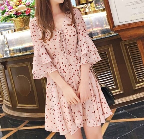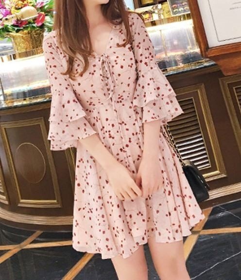 OHJ2578☆さくらんぼ フふわ フレレア ふわア ワンピース XL