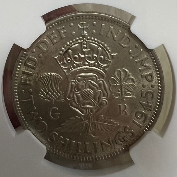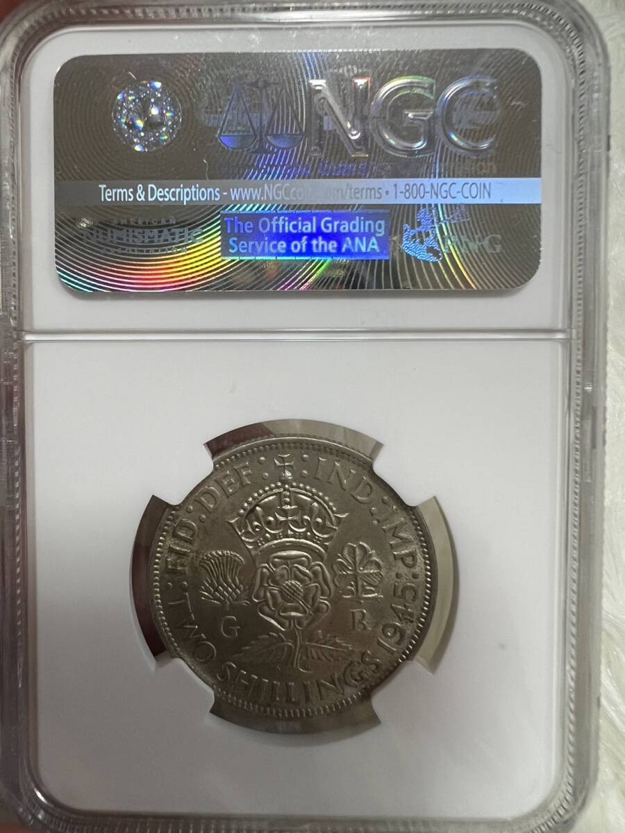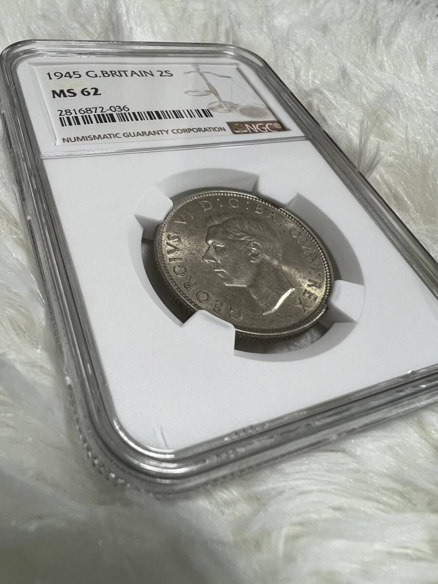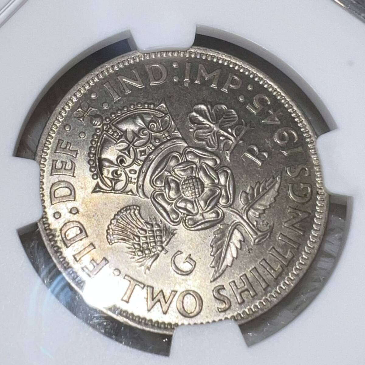 【NGC MS62】1945 イギリス 2S銀貨 ジョージ6世 2シリング アンティークコイン