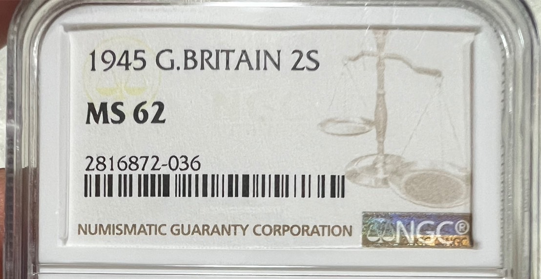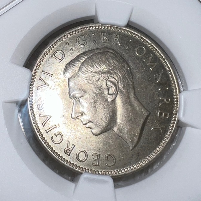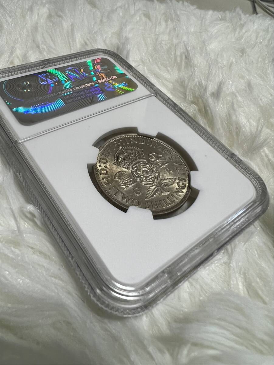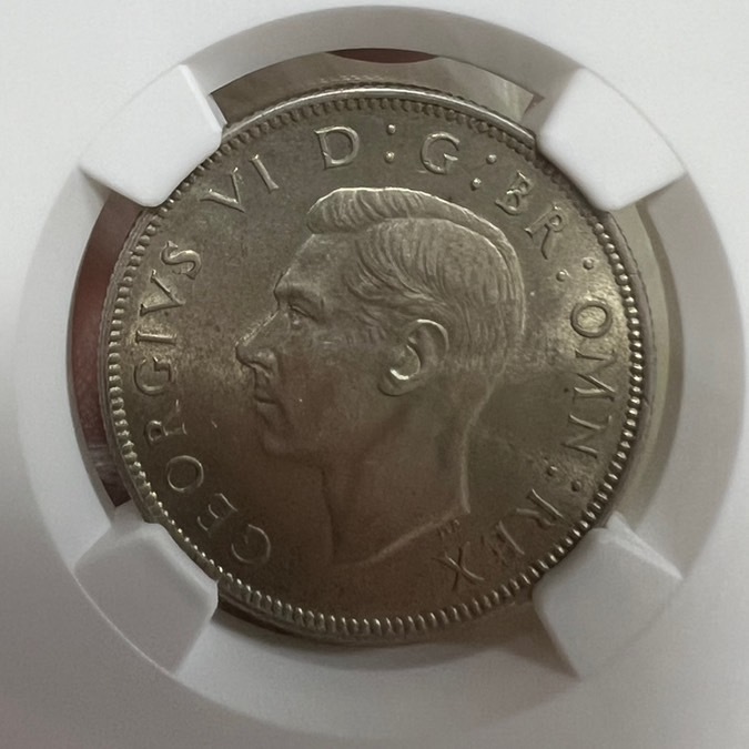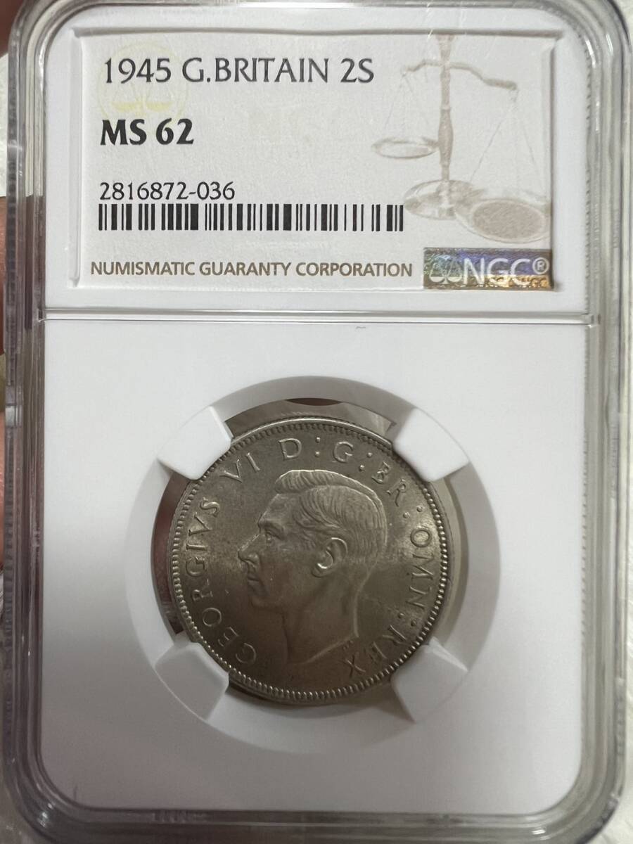 【NGC MS62】1945 イギリス 2S銀貨 ジョージ6世 2シリング アンティークコイン
