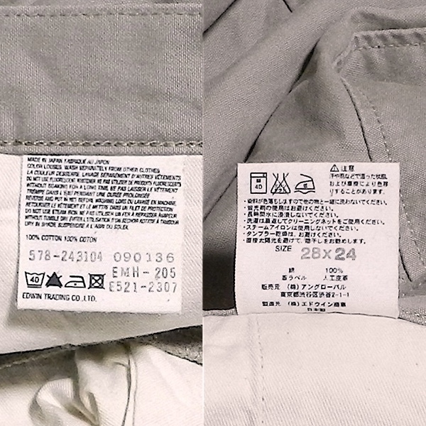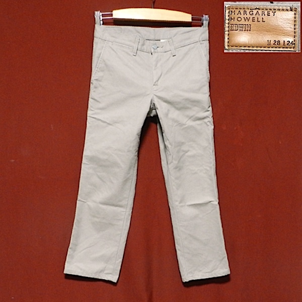 マーガレットハウエル x エドウィン ビンテージ デザイン チェーンステッチ ストレート パンツ チノパン グレー メンズ 28 x 24 美品