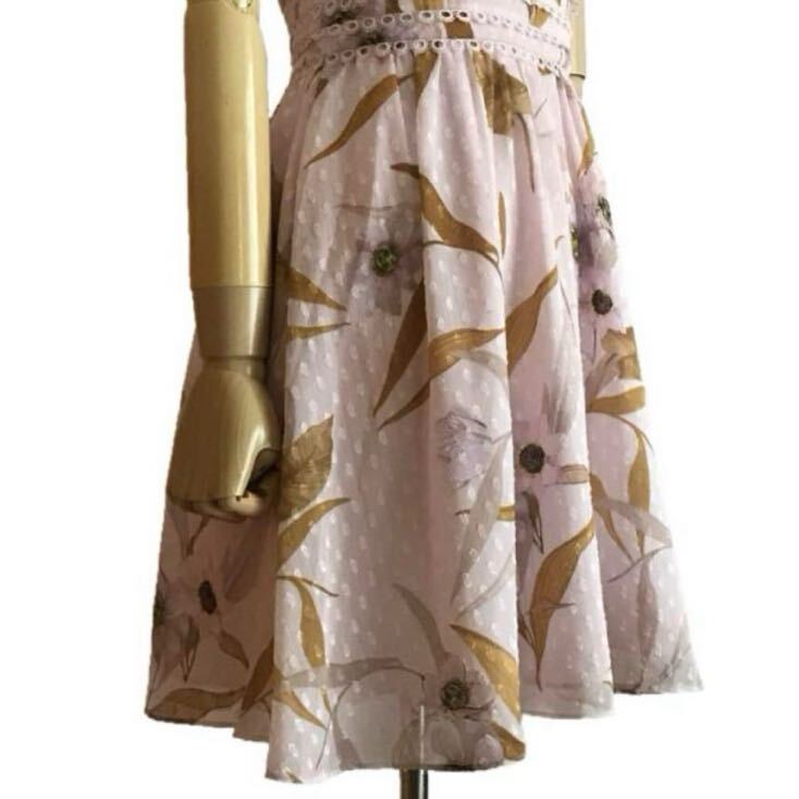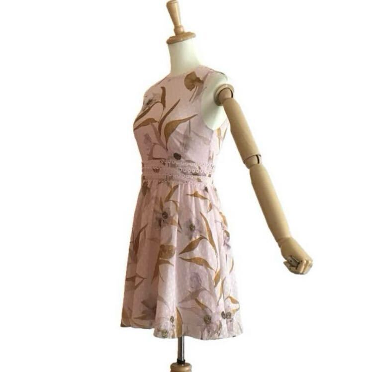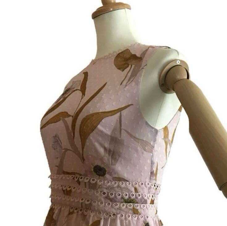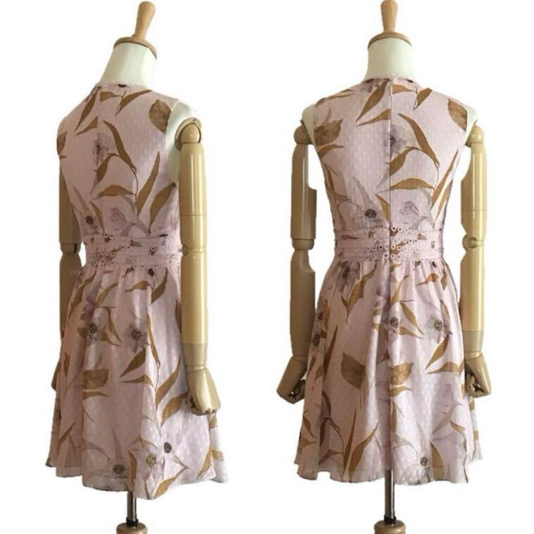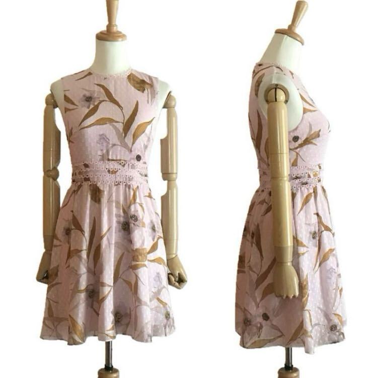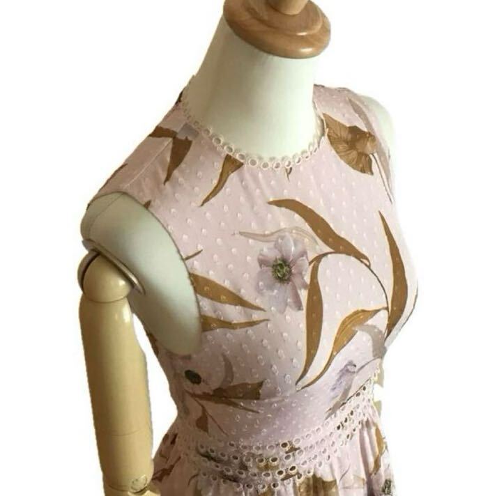 カットドビー織り生地使用のノースリーブワンピース。立体的なドット柄生地がポイント。ネックまわりとウエストにレースをあしらい可愛いさをプラス◎ ウエスト切り替えにたっぷりとギャザーを施し、ふんわりと広がるフレアシルエットが女性らしさを存分に高めてくれます。