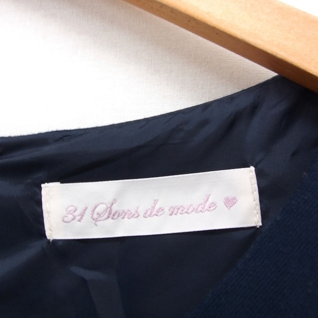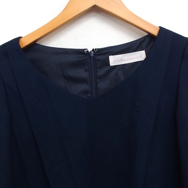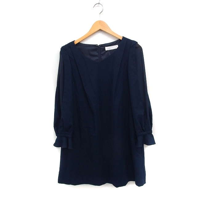 トランテアン ソン ドゥ モード 31 Sons de mode 袖シフォン切替 チュニック 長袖 Vネック 無地 36 ネイビー 紺 /FT17 レディース