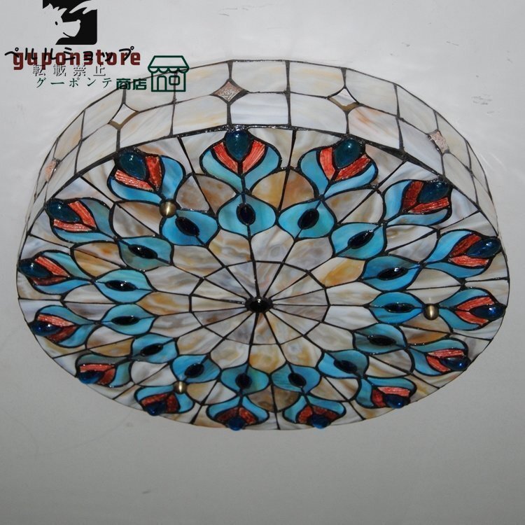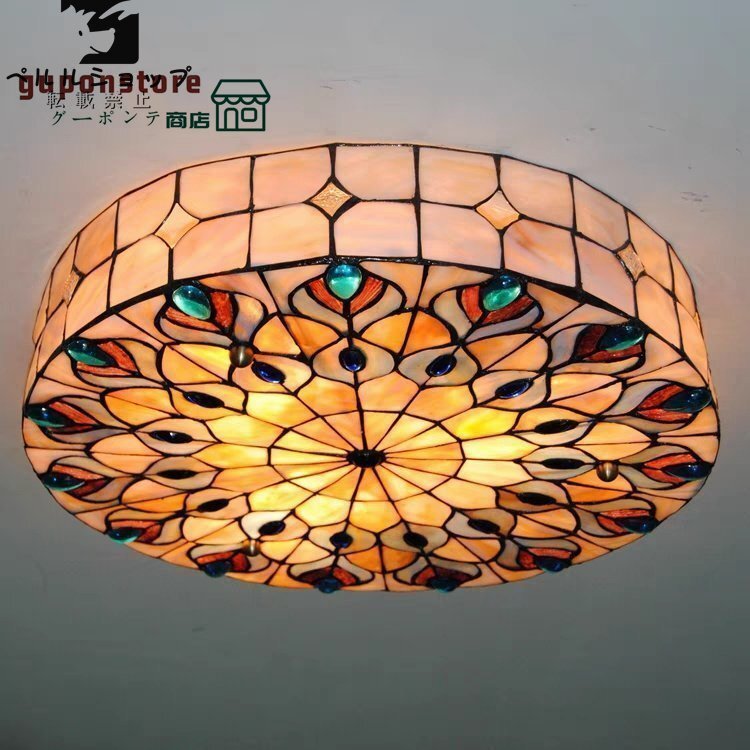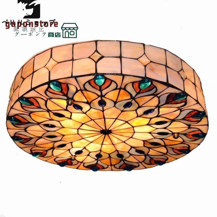 ★ステンドグラス ペンダントライト 豪華天井照明ステンドグラスランプ ガラス貝工芸品
