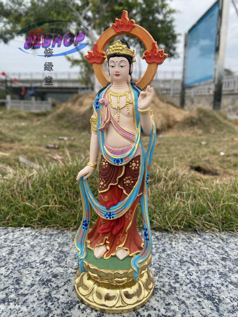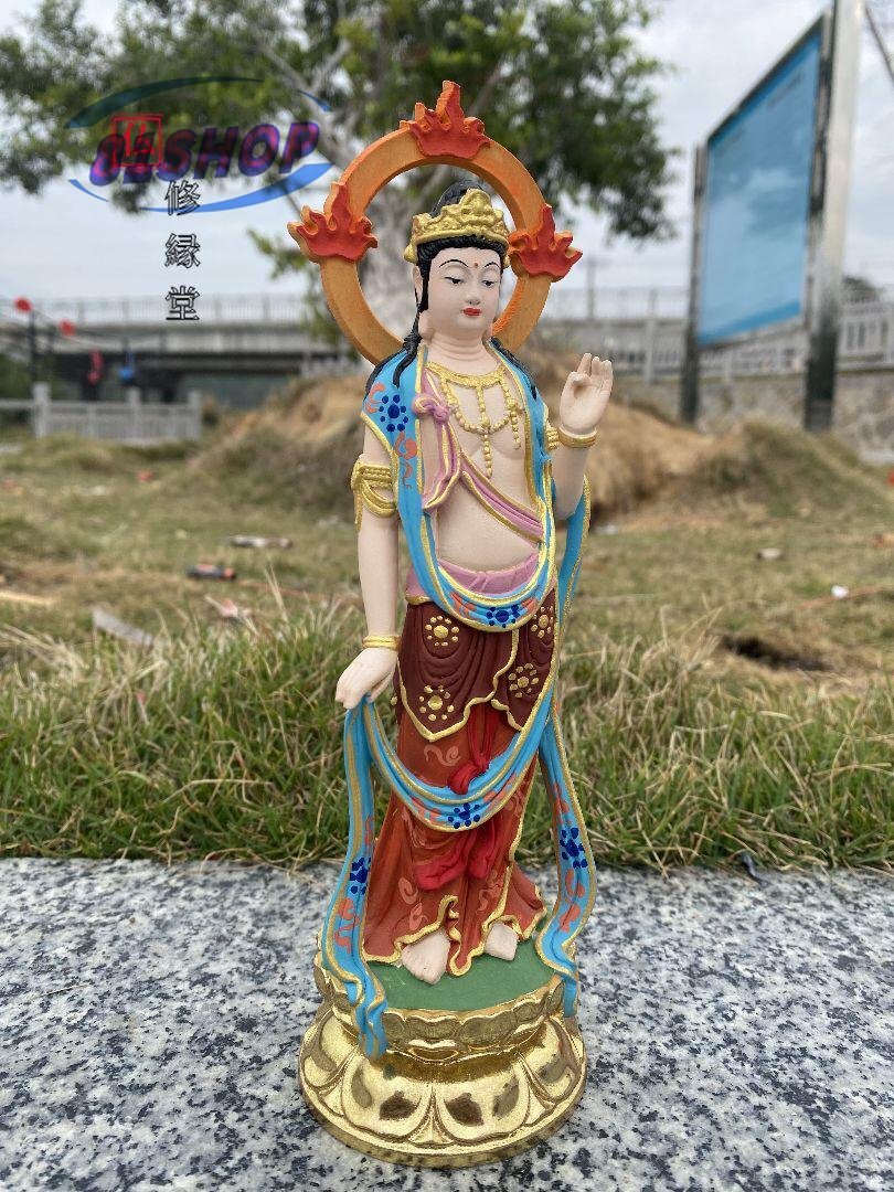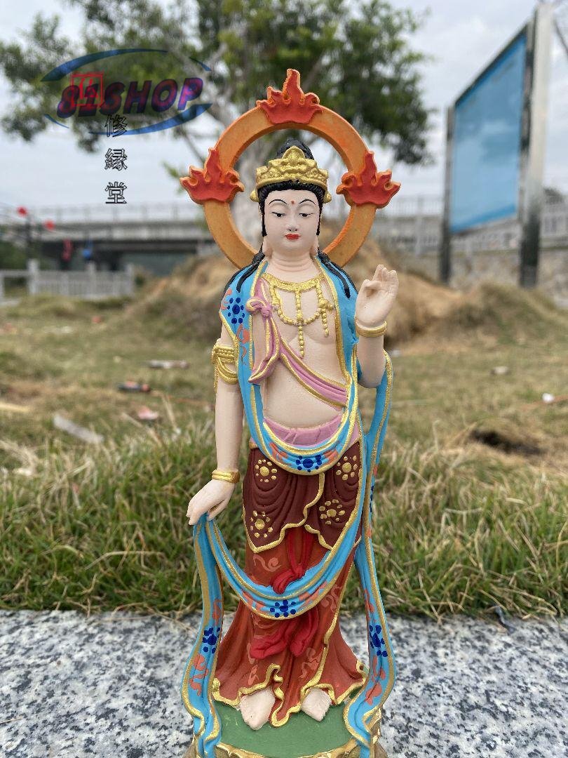 彩繪切金 勢至菩薩仏像立像 供養品 木彫仏教 美術工芸品 風水 開運