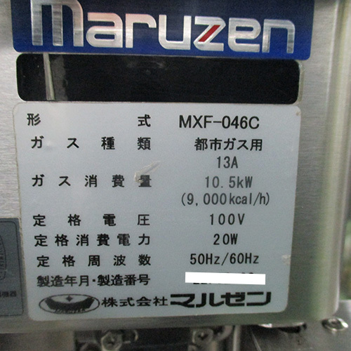 【業界最長1年保証】一槽ガスフライヤー マルゼン MXF-046C 都市ガス 業務用 中古/送料別途見積