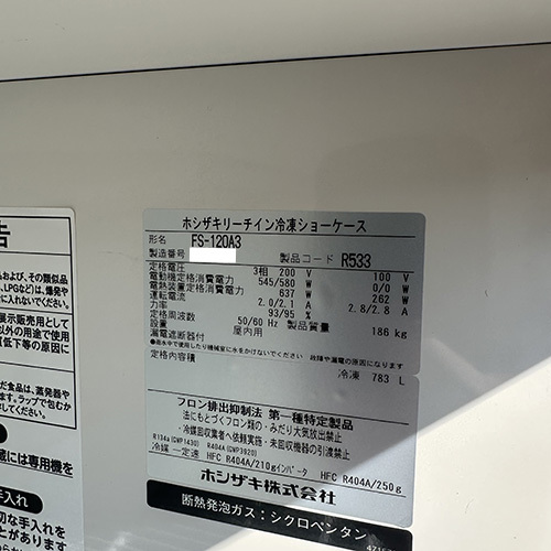 【業界最長1年保証】冷凍リーチイショーケース ホシザキ FS-120A3 業務用 中古/送料別途見積