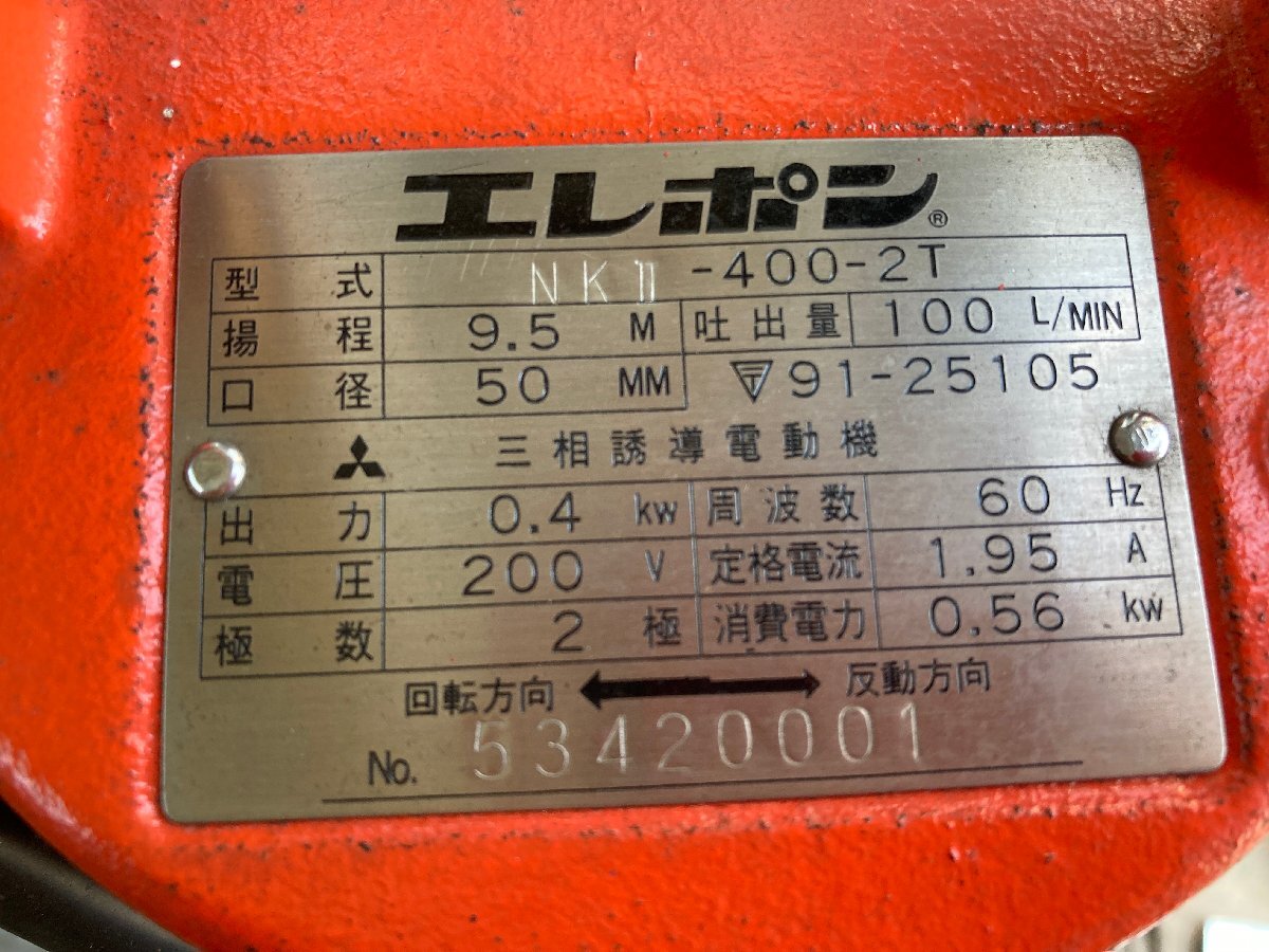 エレポン 水中ポンプ NK-Ⅱ 説明書付属 ポンプ起動端子,ポンプ停止 同時運転端子付き 吐出100L 未使用?