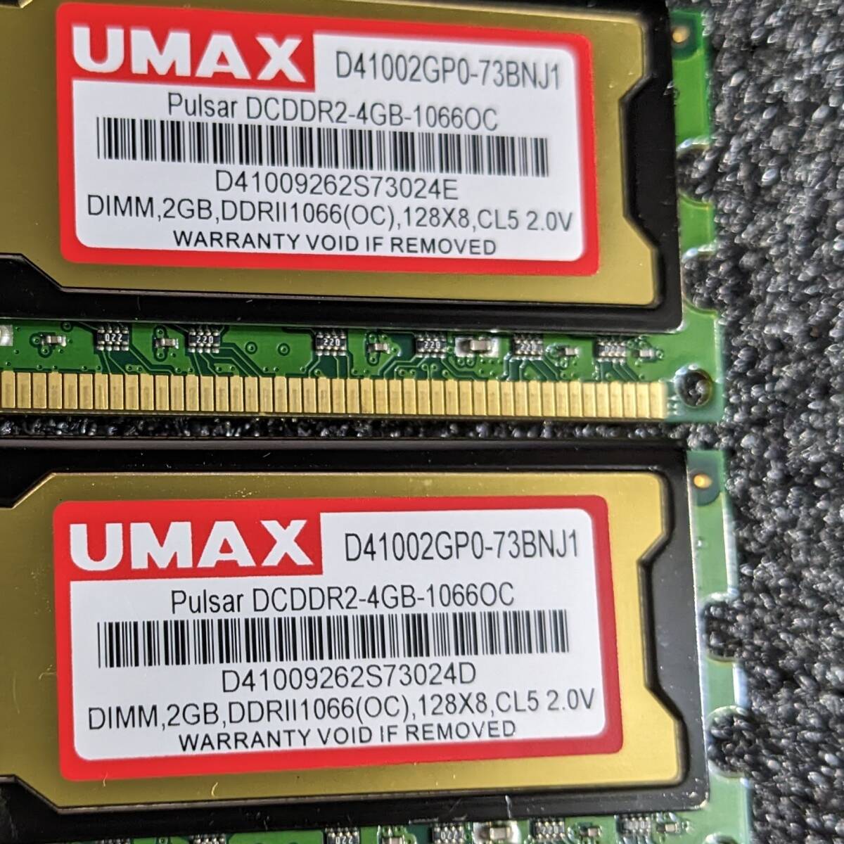 UMAXのオーバークロックDDR2メモリ、2GB2枚組合計4GBのセットです。