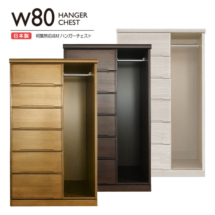 幅80cm ハンガーチェスト 日本製 国産 6段 タンス 整理タンス 多段 チェスト 服吊り ハンガーパイプ 箱組み ホワイト