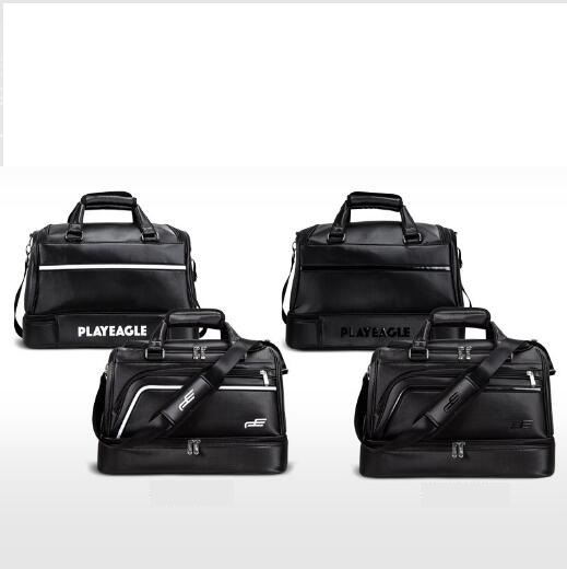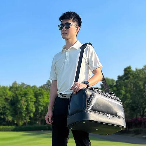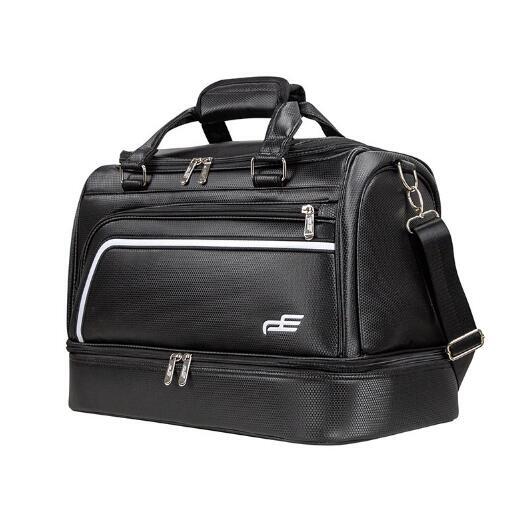 人気品上質ゴルフトートバッグ 二層式 ラウンドトートPUレザー 2WAYシューズポケット付き ショルダー付き防水大容量ジム旅行 出張 ブラック