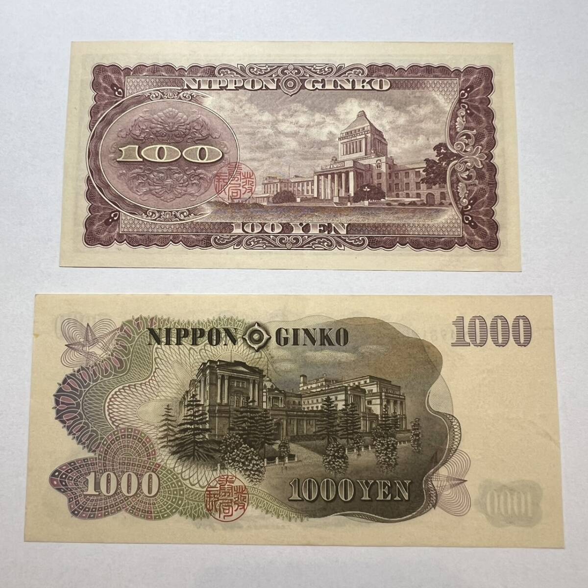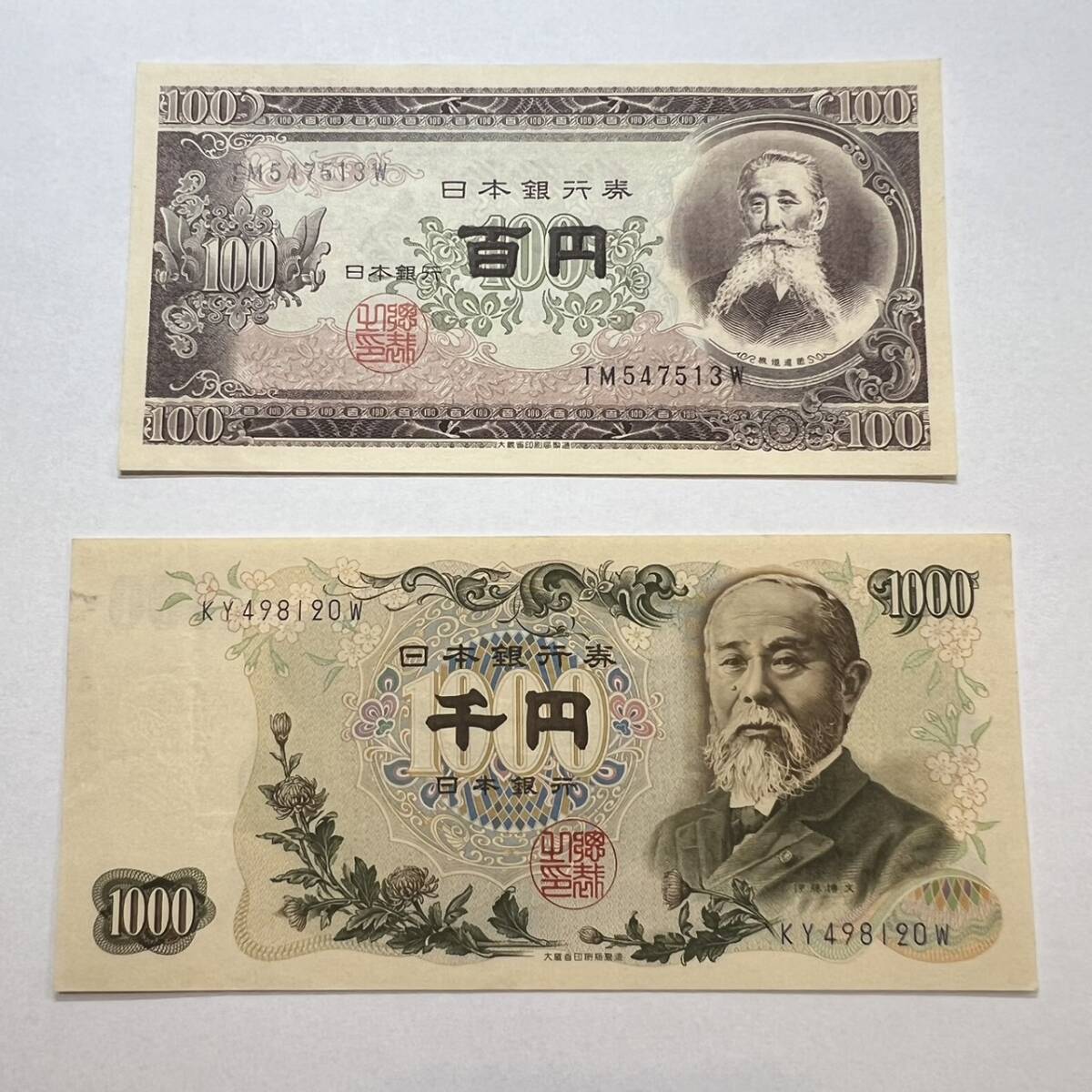 【同梱可】ピン札 板垣退助 100円 伊藤博文 1000円 2枚セット 日本銀行券 アンティーク コレクション 紙幣 古銭 札 6MI0724