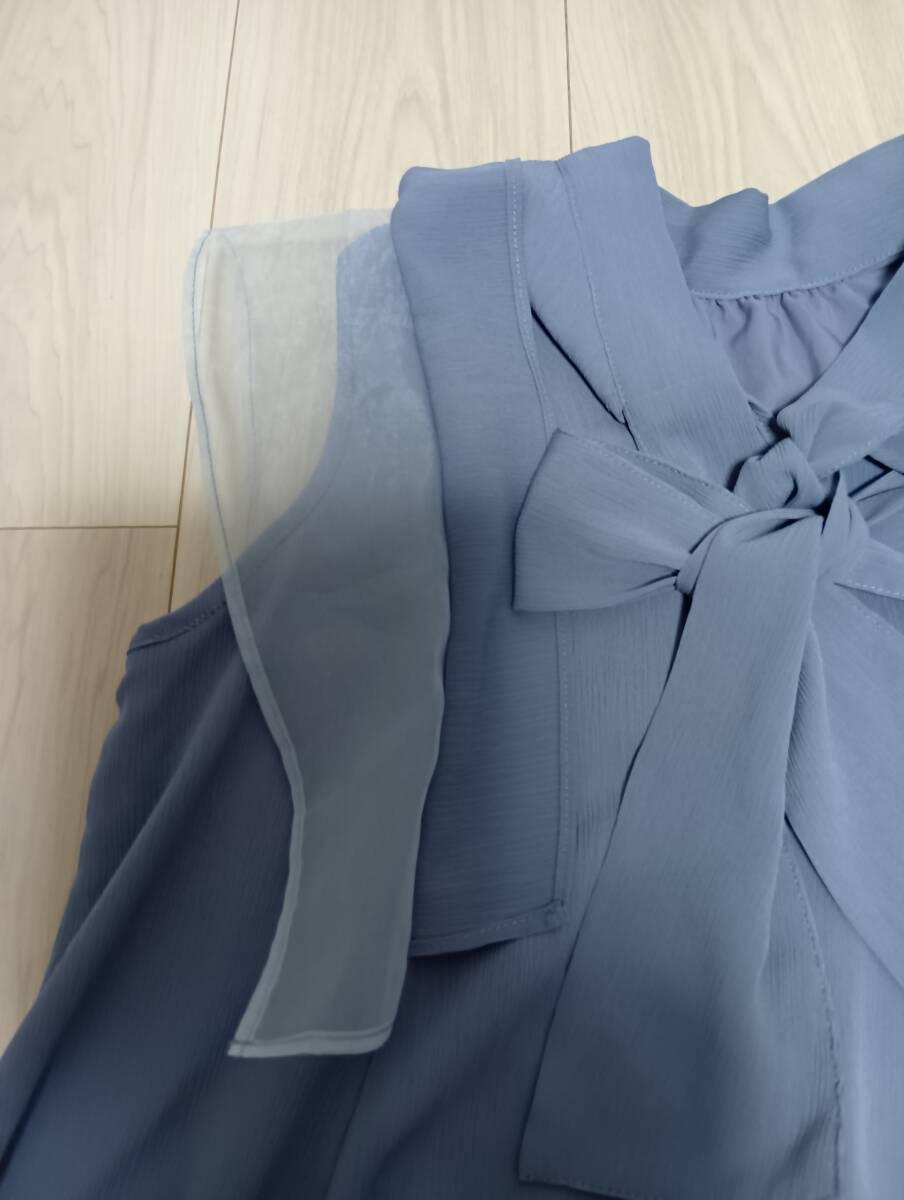 肩、腕周りはシフォン生地とレース生地のダブルデザインなので、カバーできるデザインです。