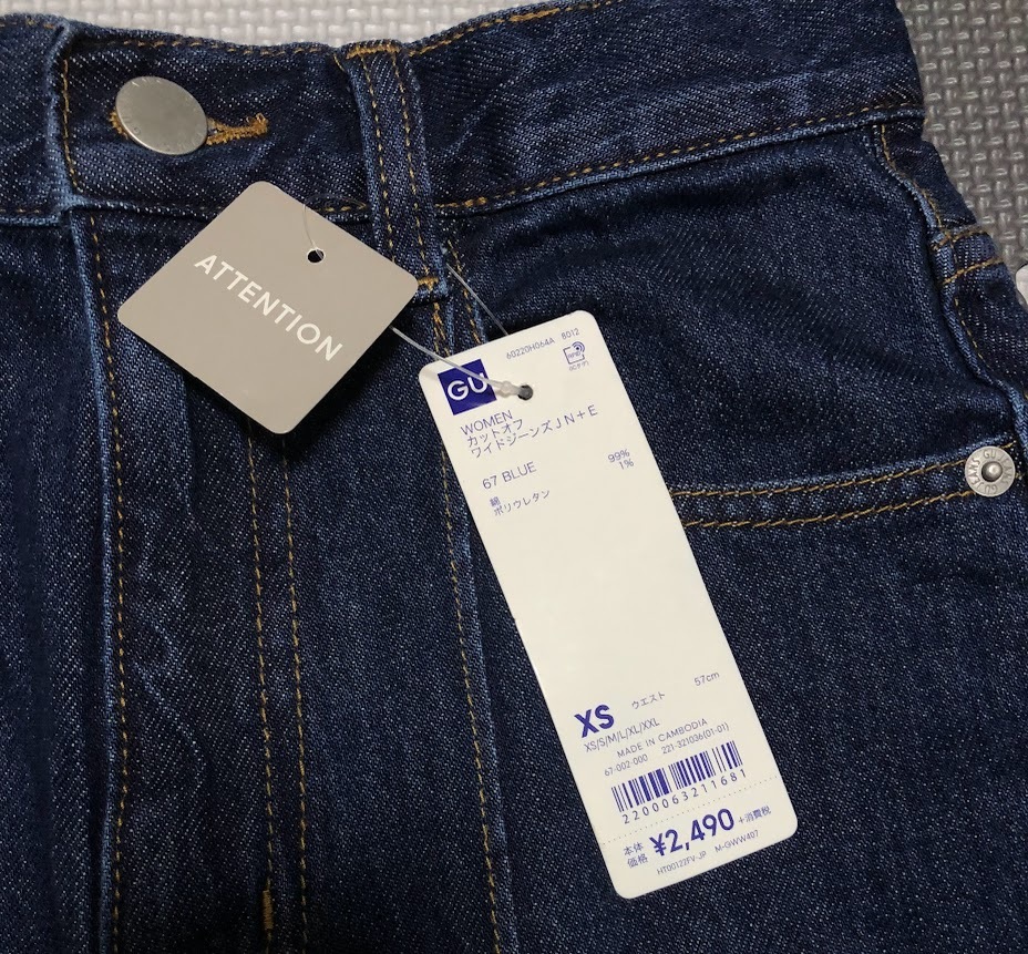 GU ジーユー カットオフワイドジーンズJN+E デニムパンツ WOMEN レディース ★未使用・タグ付き★ XSサイズ