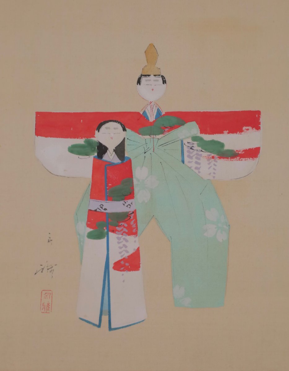 【模写】吉】11219 山川永雅 雛図 小堀鞆音・佐竹永湖師事 大和絵 茶掛け 茶道具 掛軸 掛け軸 骨董品