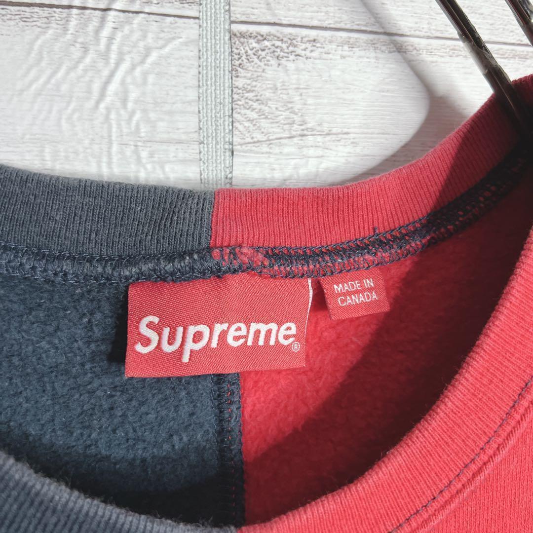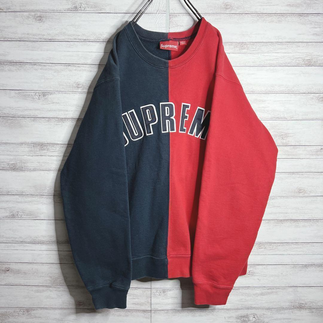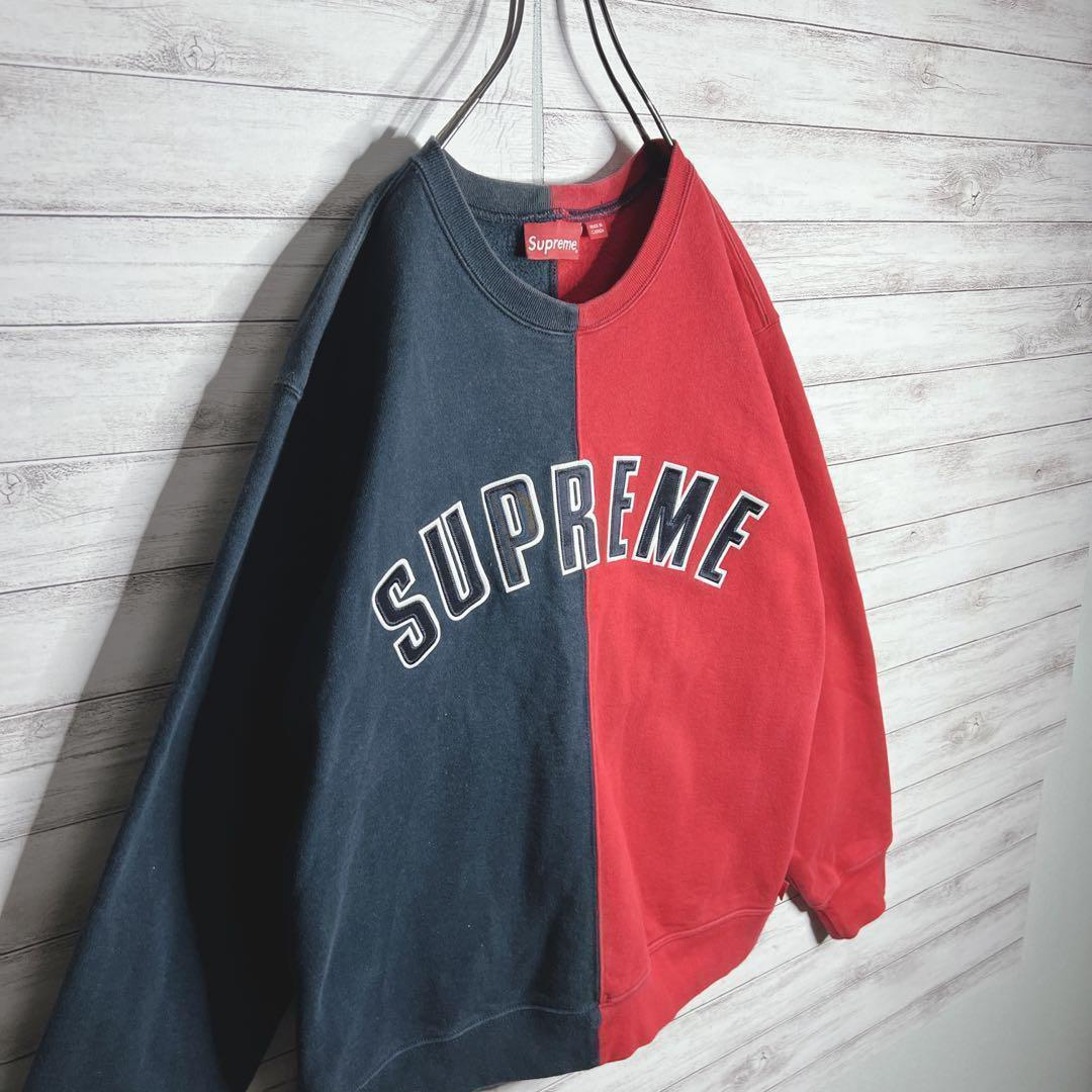 【入手困難!!】シュプリーム カナダ製 刺繍 バイカラー アーチロゴトレーナー 肉厚 裏起毛 ゆるだぼ 重ね着 希少 supreme パーカー スウェット Canada製