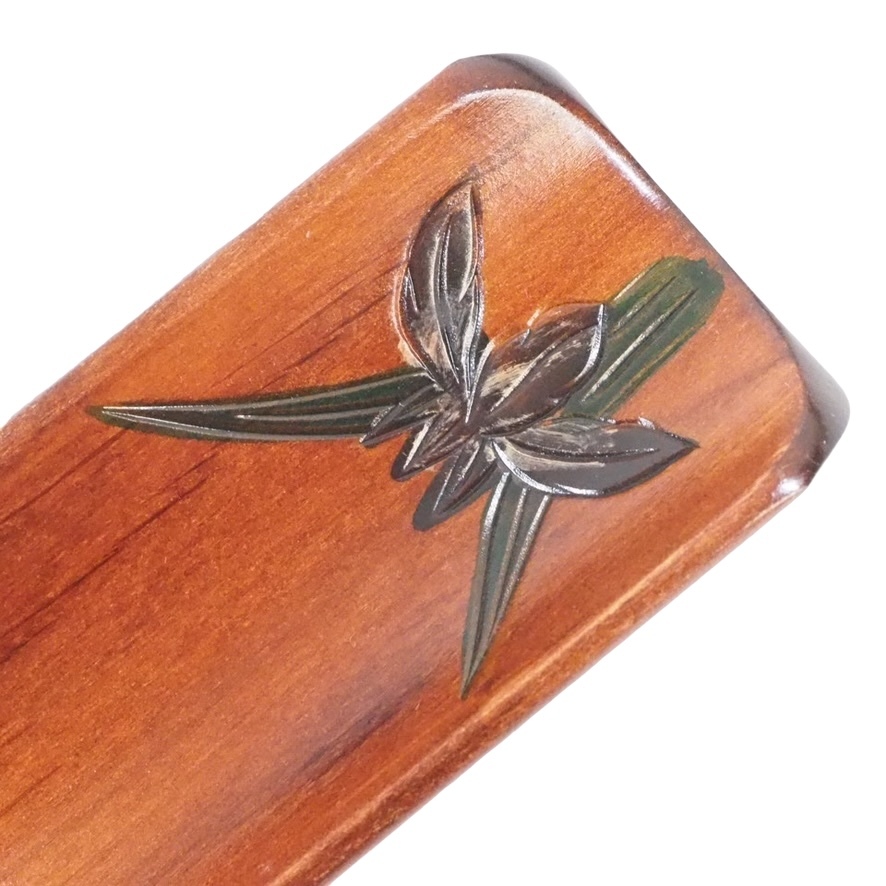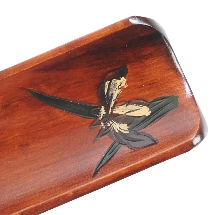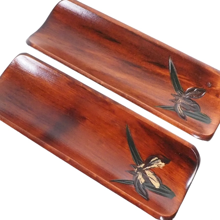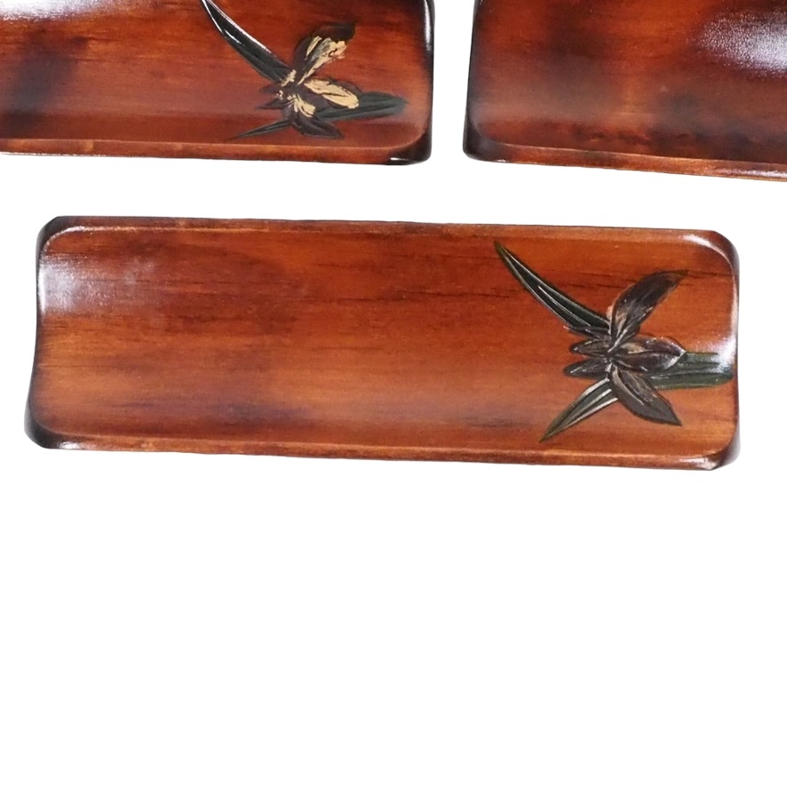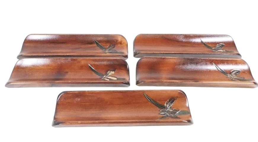 昭和ビンテージ 天然木製漆器 あやめ彫おしぼり置き 五枚セット 共箱付