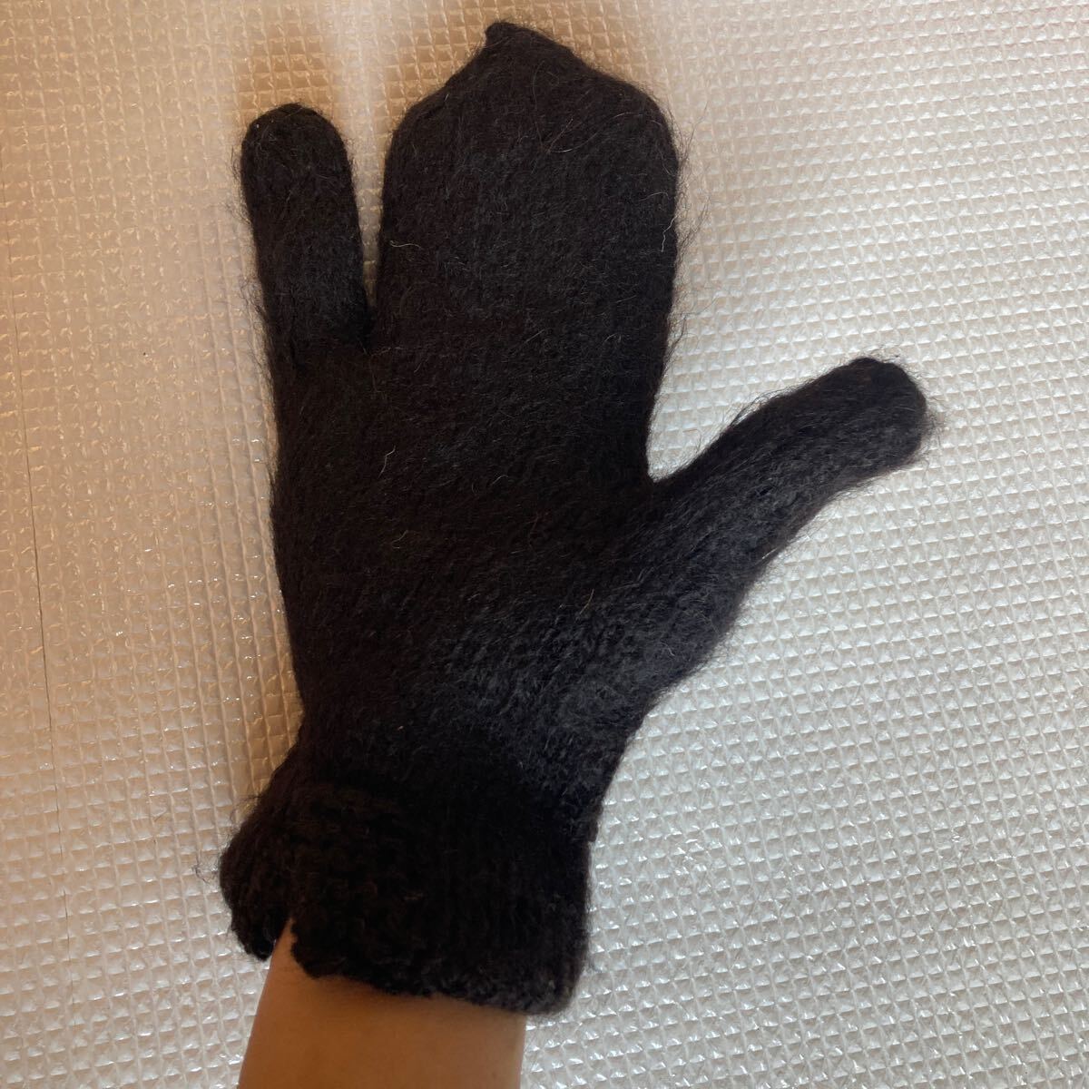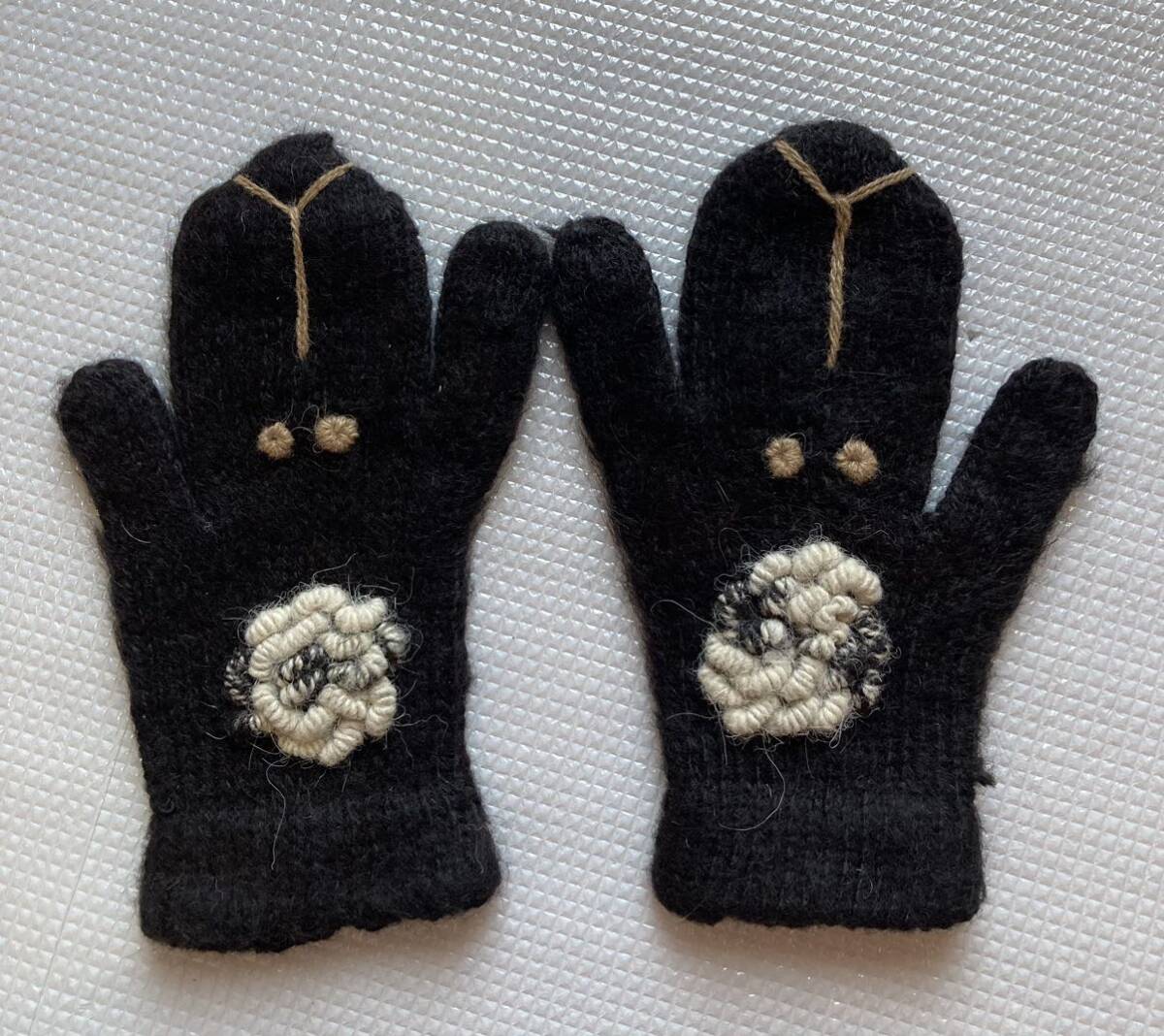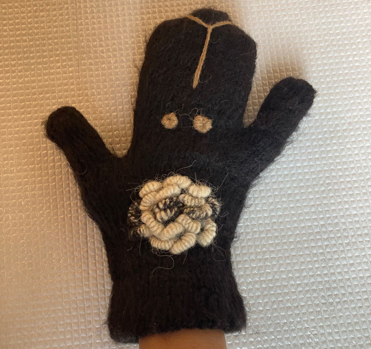 犬の顔の毛糸の手袋。