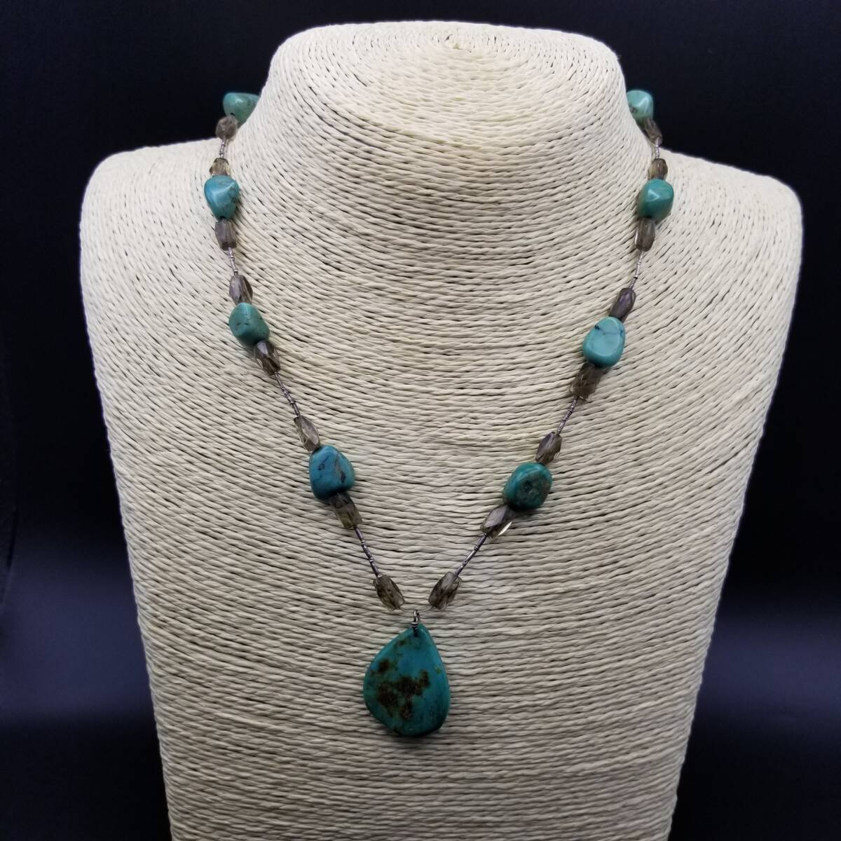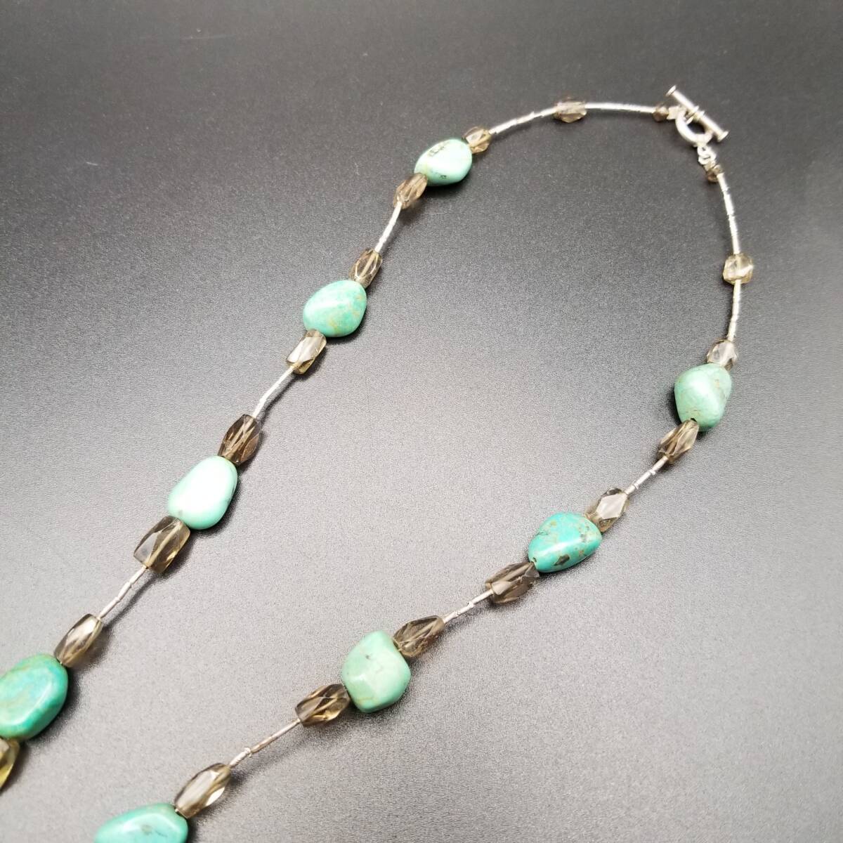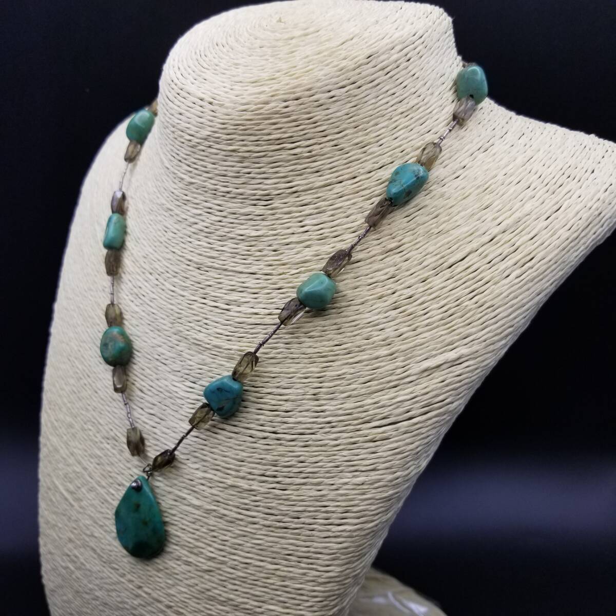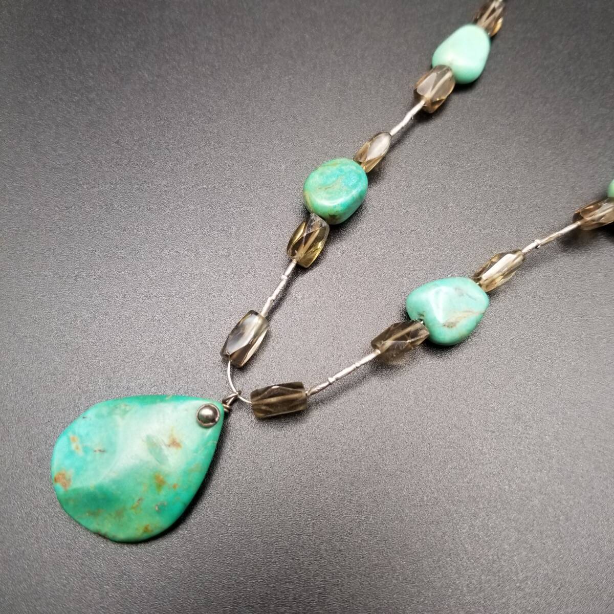 大粒 ターコイズ スモーキークォーツビーズ リンク 925 シルバー ヴィンテージ ペンダント ネックレス マンテル エスニック調 R13-T