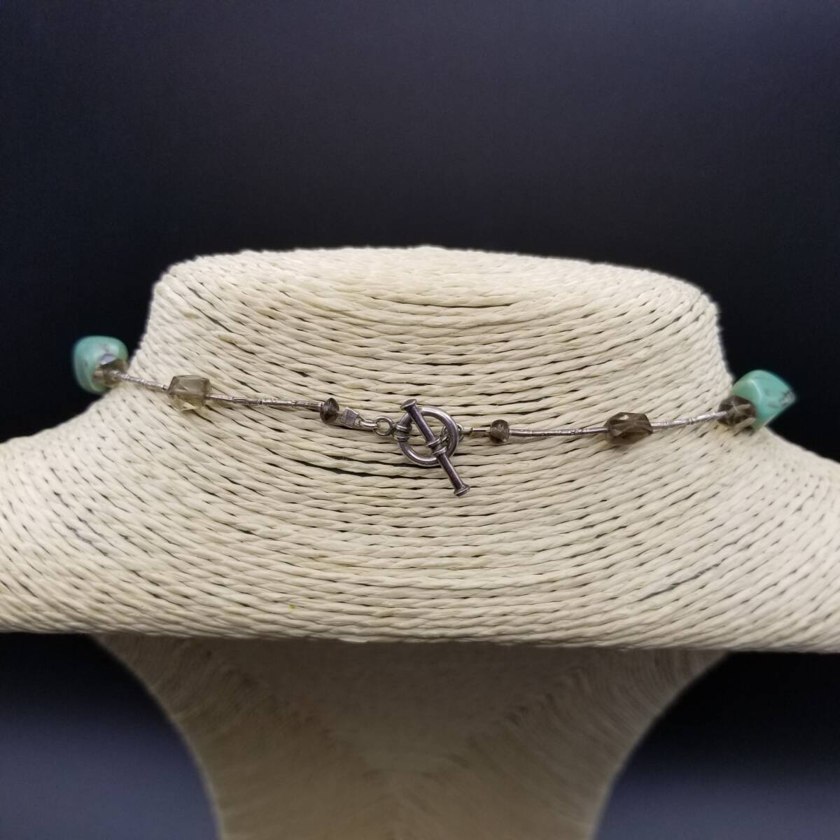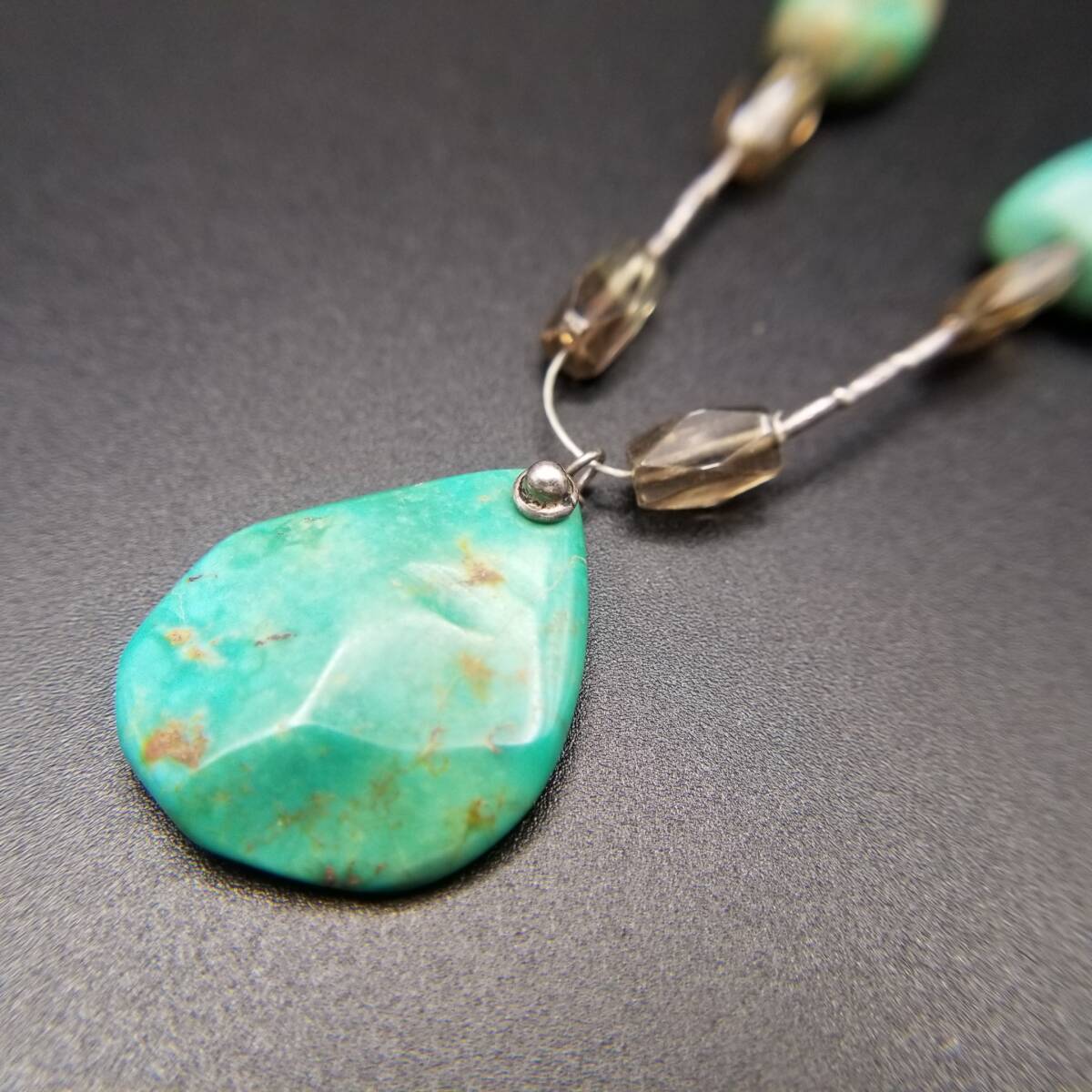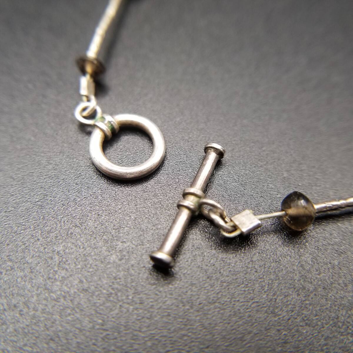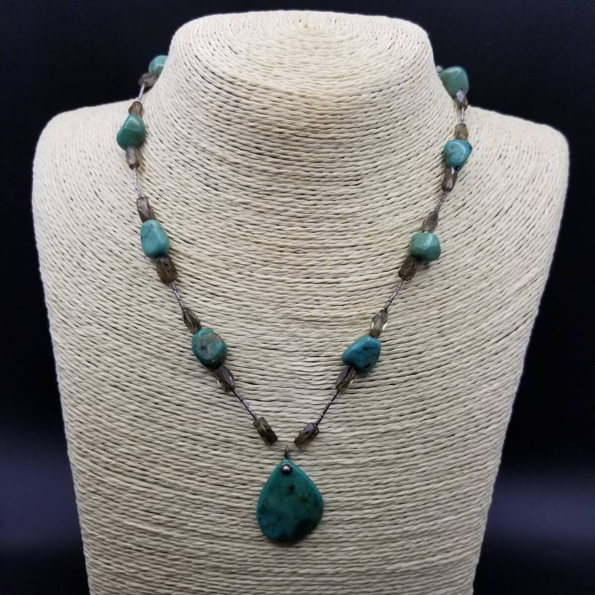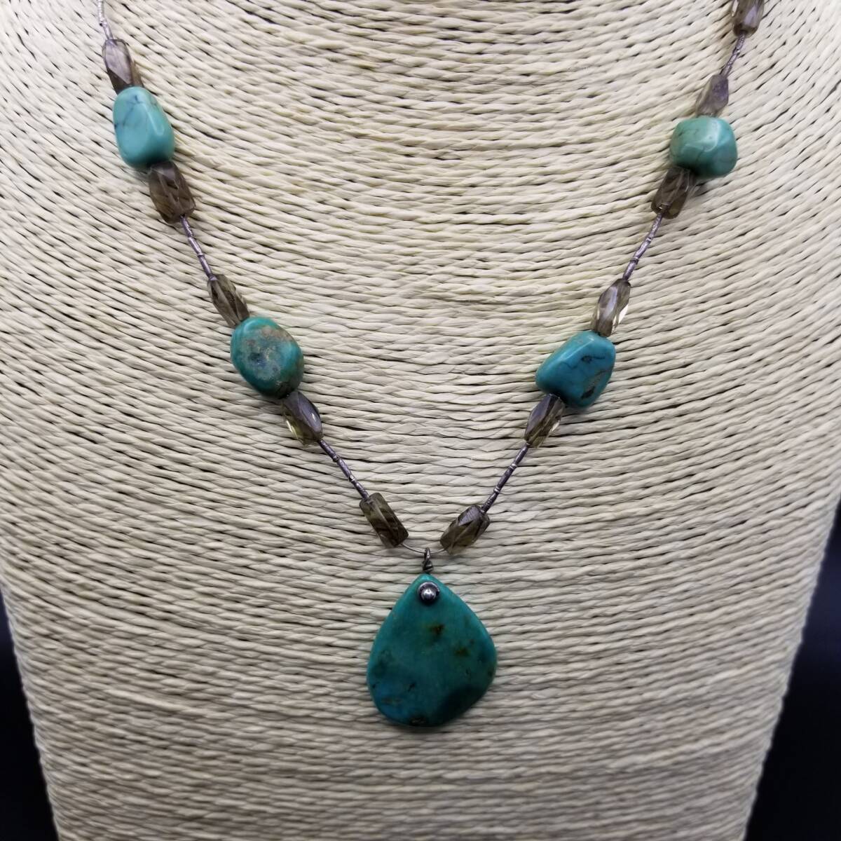 大粒 ターコイズ スモーキークォーツビーズ リンク 925 シルバー ヴィンテージ ペンダント ネックレス マンテル エスニック調 R13-T