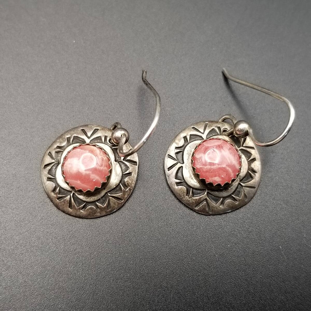 ROBERT NILSSON インカローズ フラワー モチーフ ピンク  カボション フック 925 ヴィンテージ シルバー ピアス イヤリング R13-P
