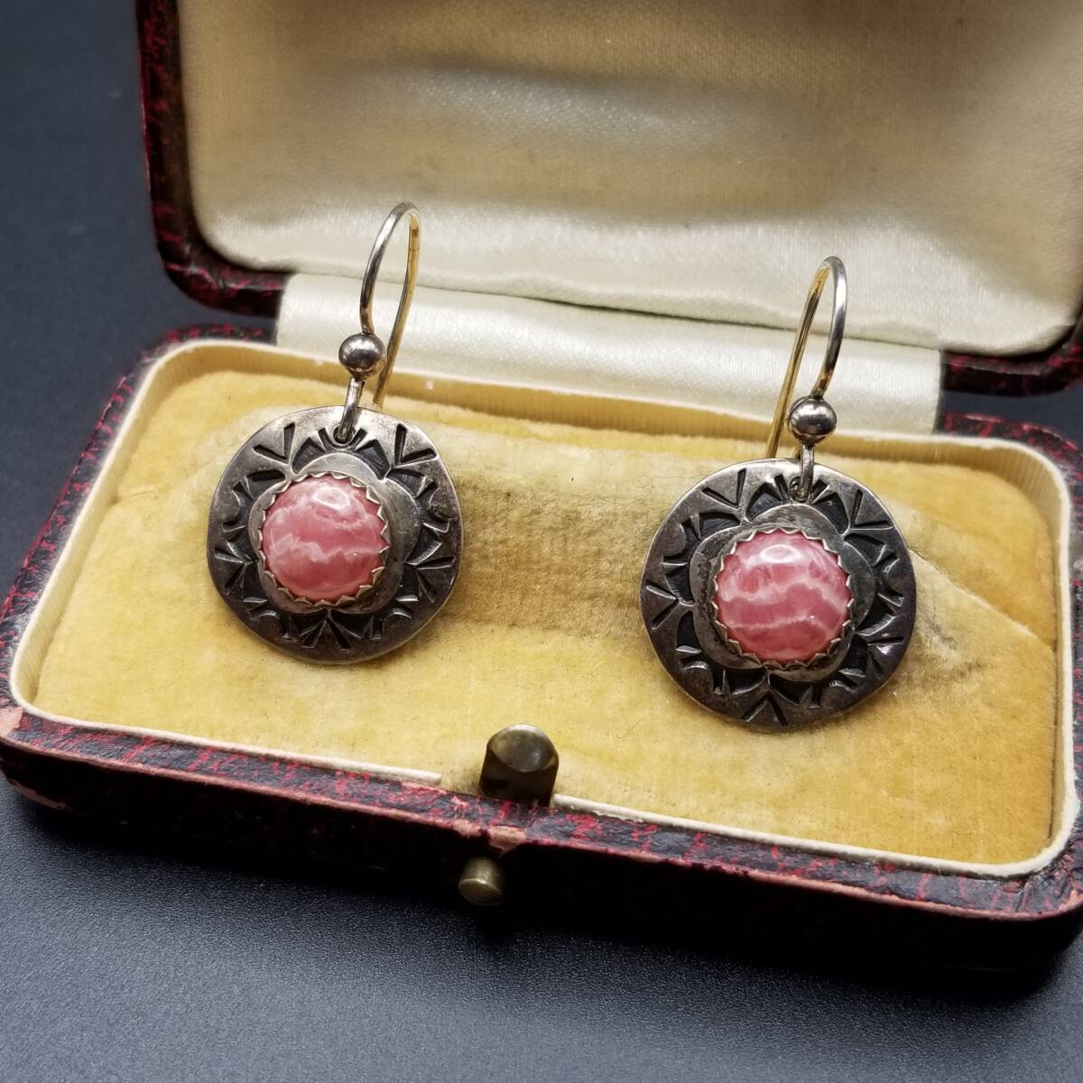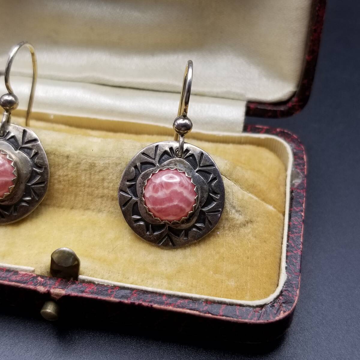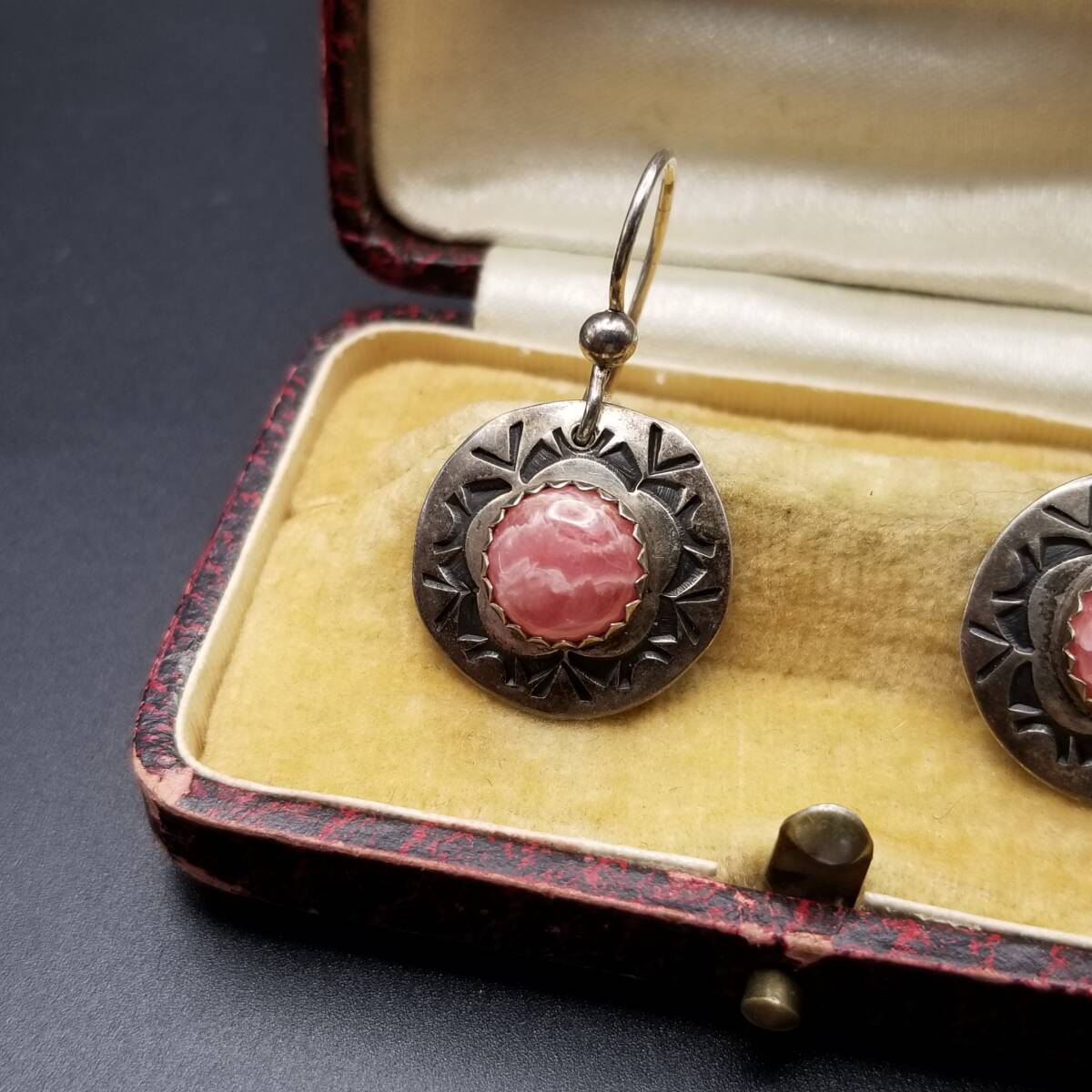 ROBERT NILSSON インカローズ フラワー モチーフ ピンク カボション フック 925 ヴィンテージ シルバー ピアス イヤリング R13-P
