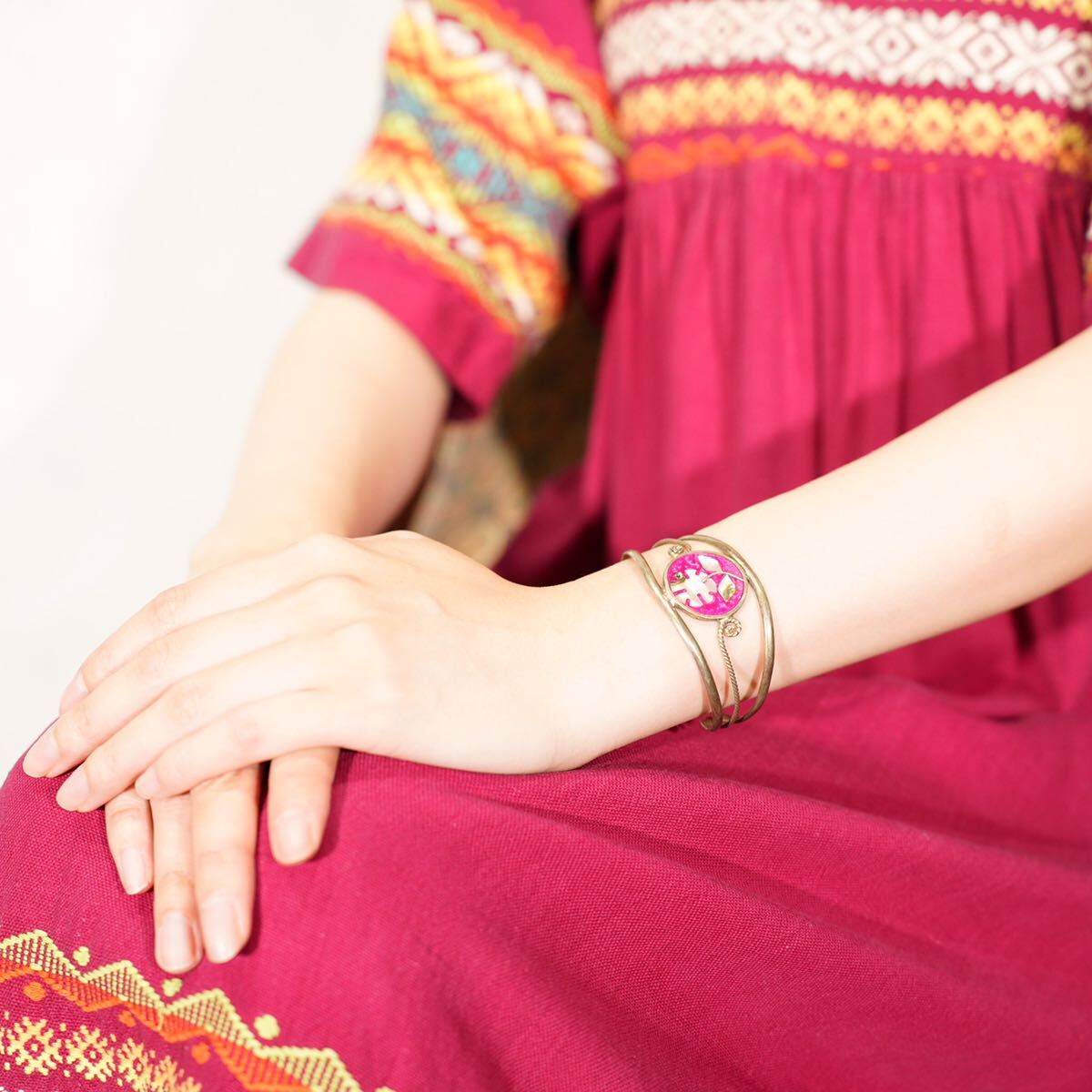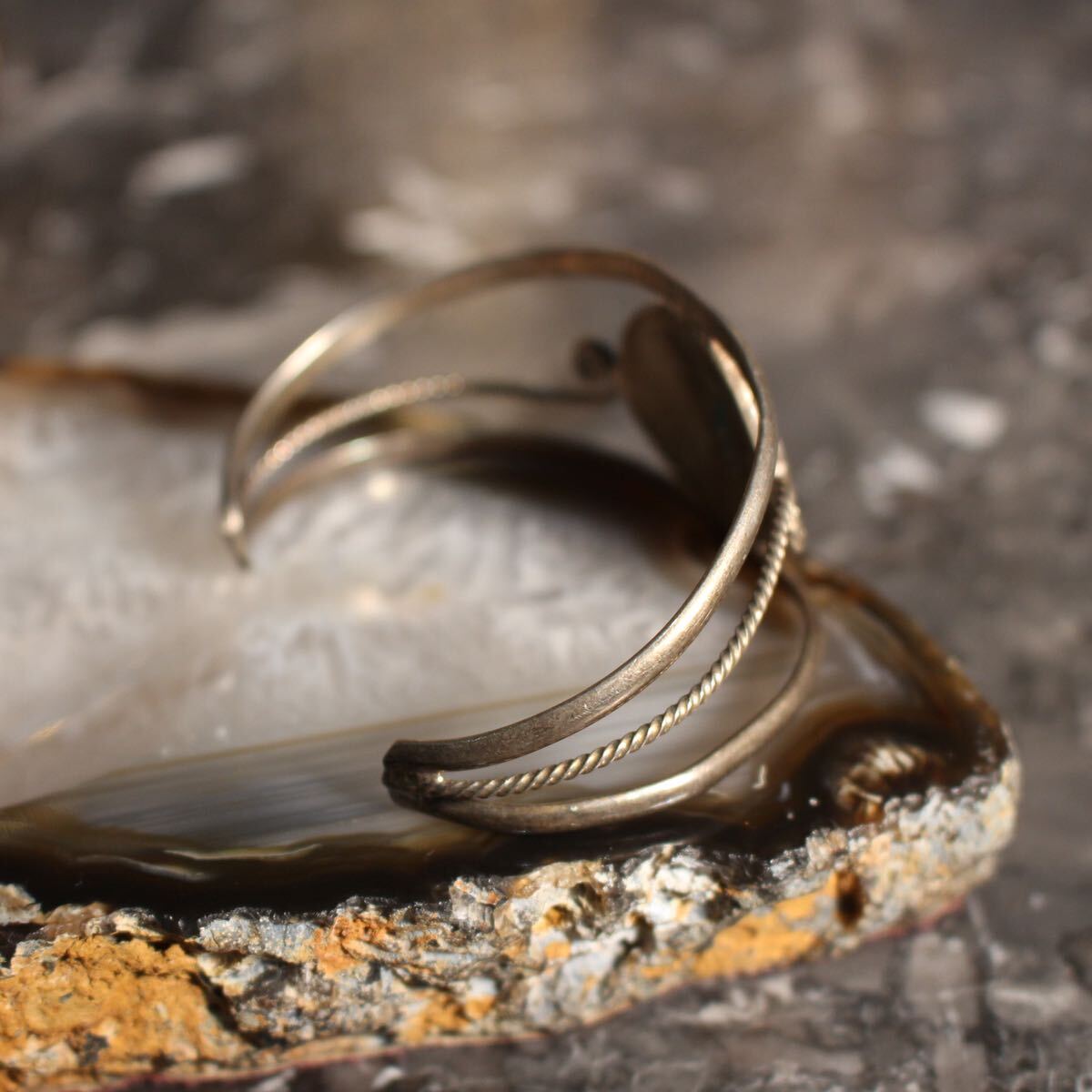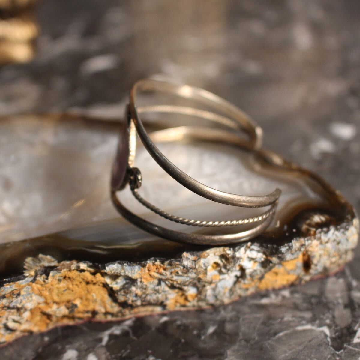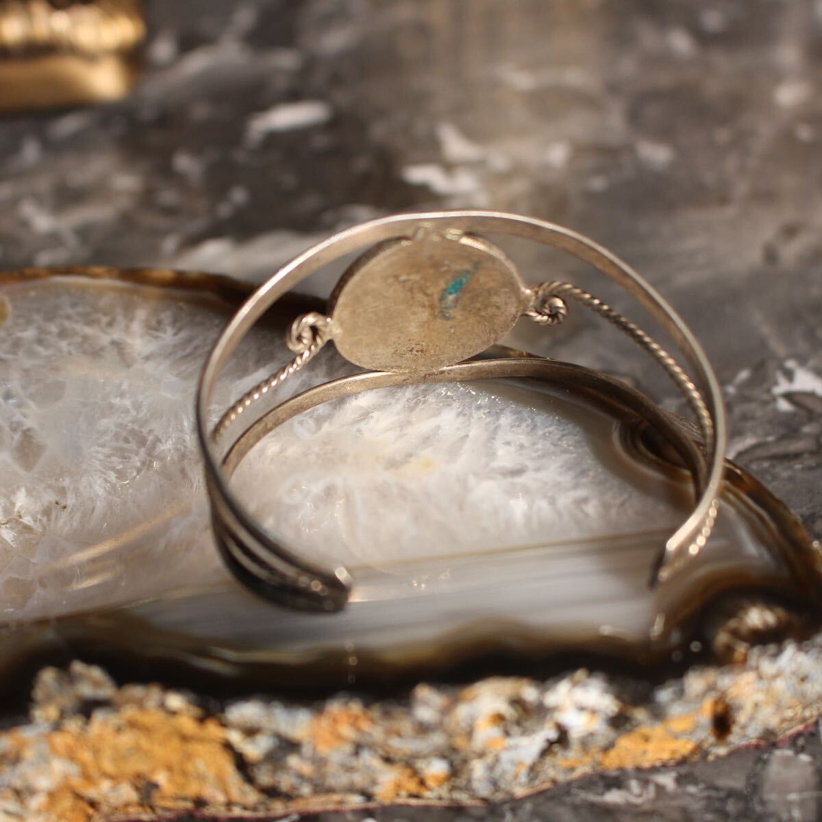 USA VINTAGE FLOWER STONE INLAY DESIGN BANGLEアメリカ古着お花ストーンインレイデザインバングル