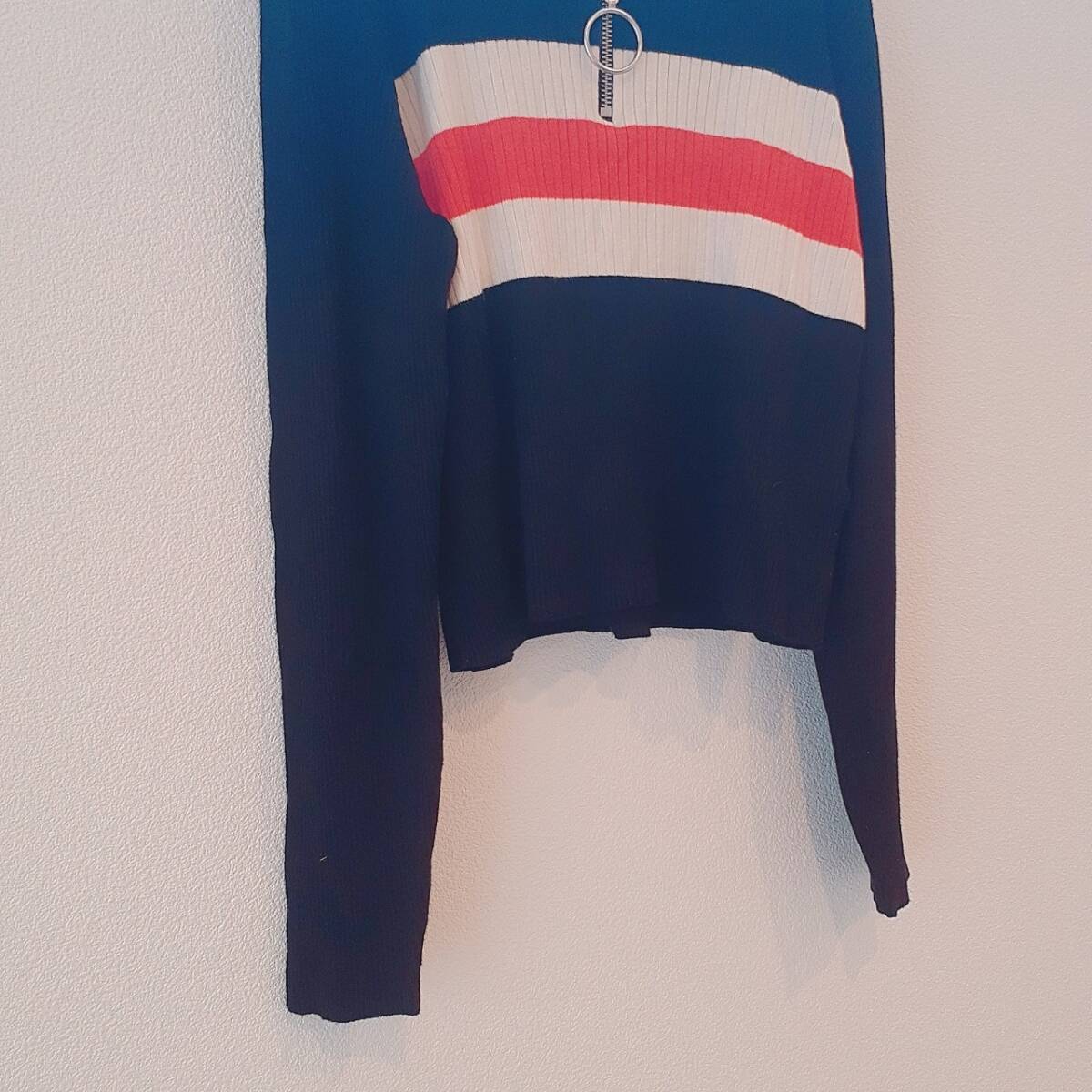 | 新品 H&M DIVIDED トップス プルオーバー ハーフジップアップ 黒×白×赤 L レディース |