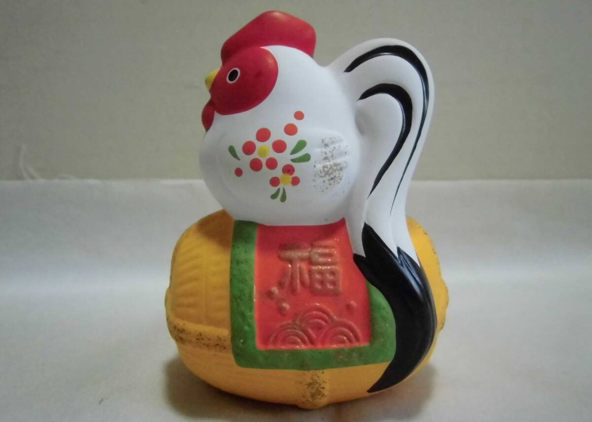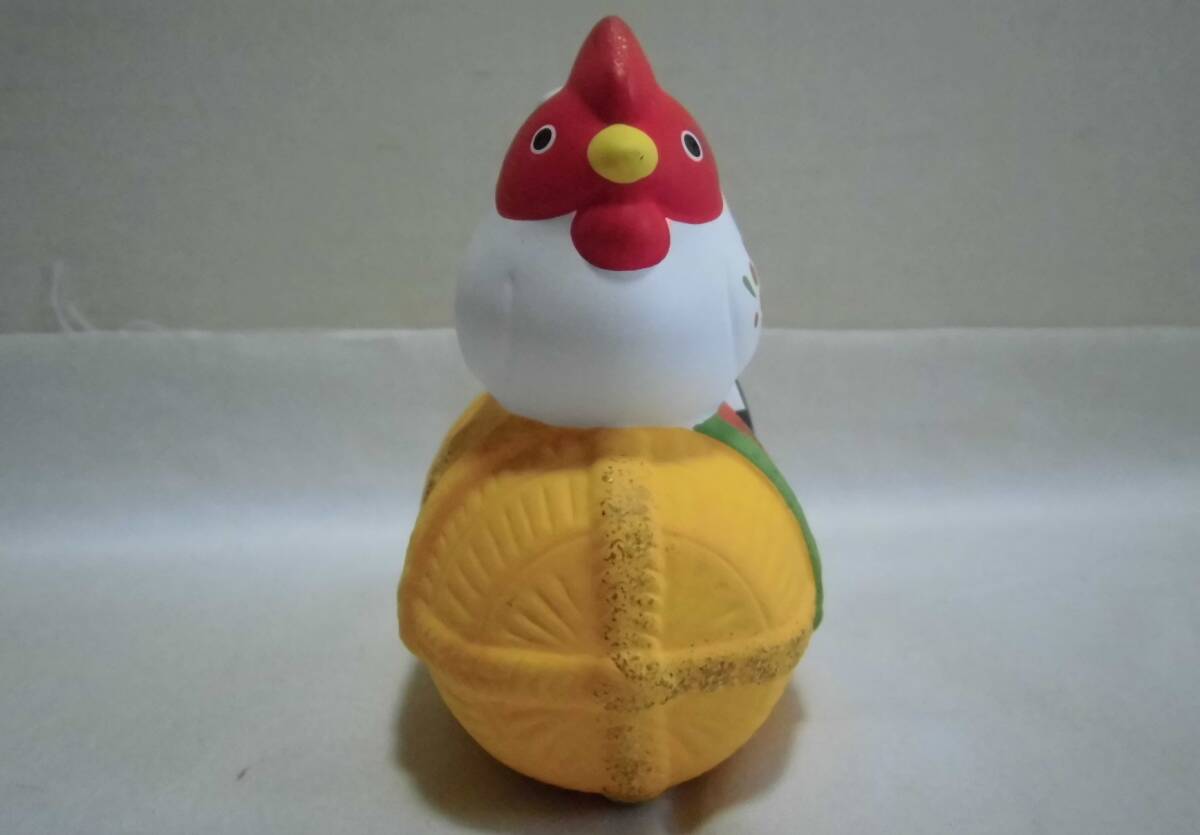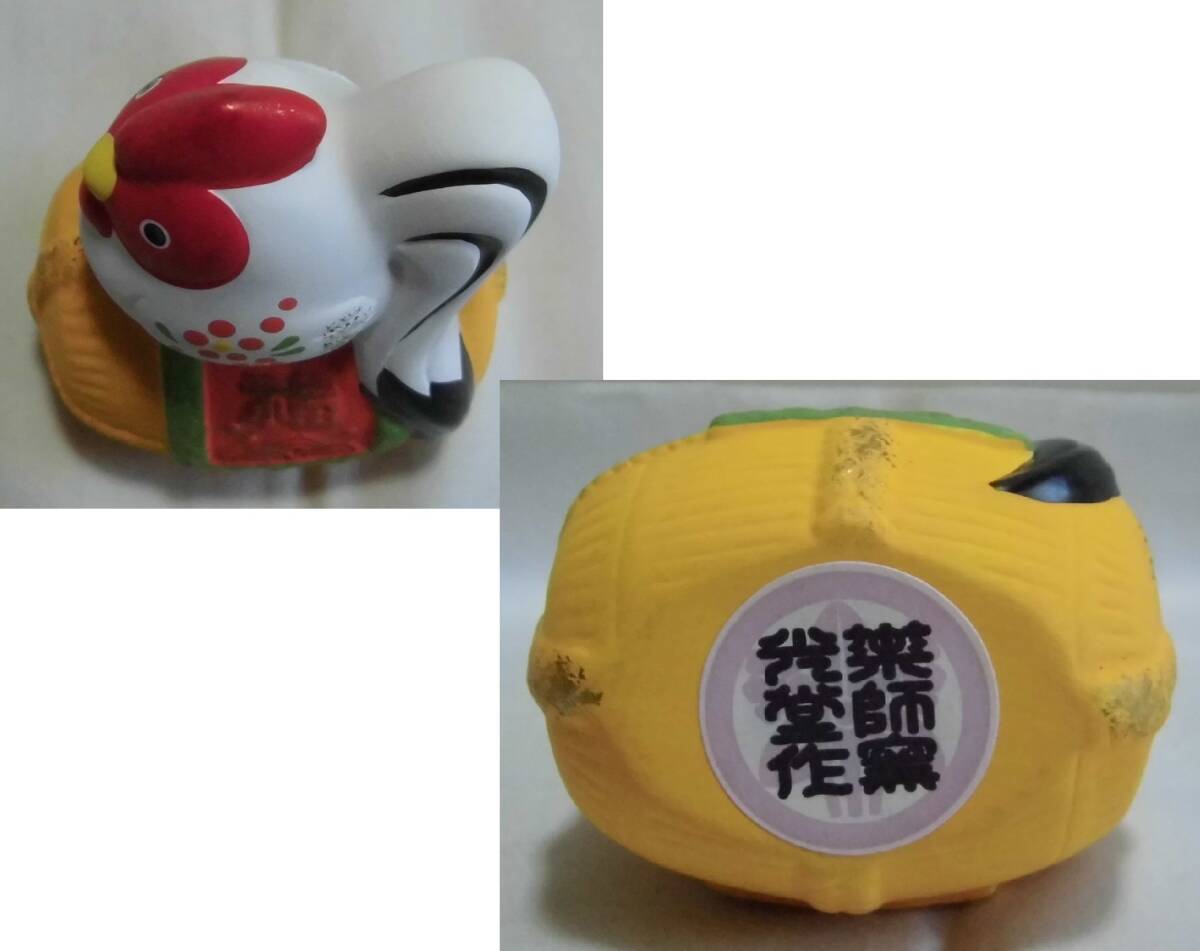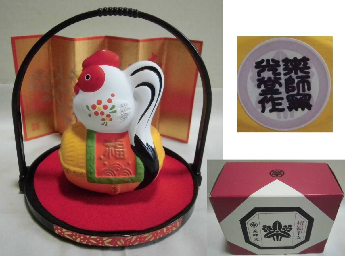 干支置物 酉 飾り台 屏風付 薬師窯 光堂作 箱入り 色絵 鶏 にわとり 陶人形 土人形 招福 開運 縁起物 飾り物 オブジェ 工芸品 レトロ