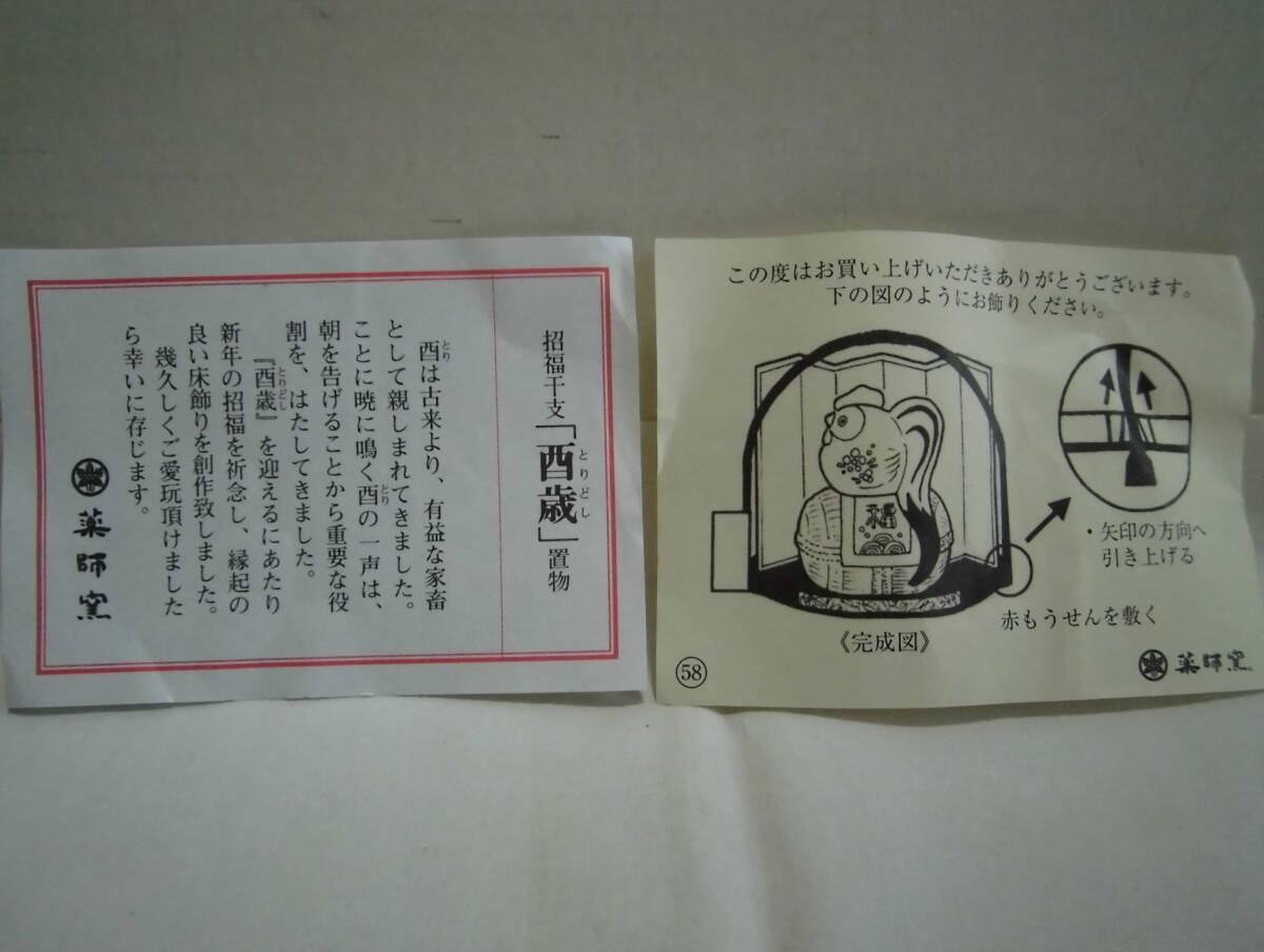 干支置物 酉 飾り台 屏風付 薬師窯 光堂作 箱入り です。