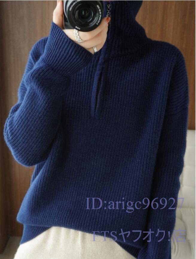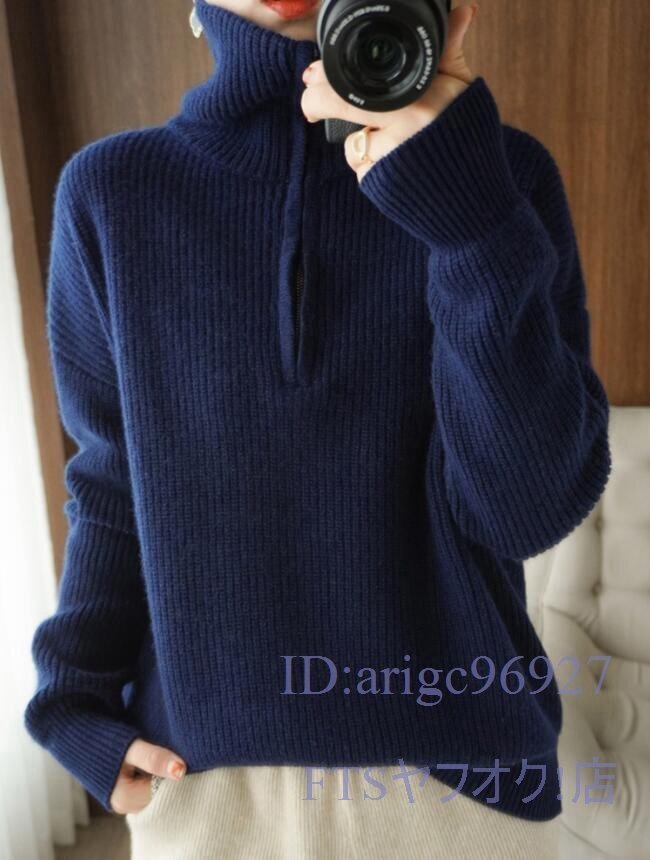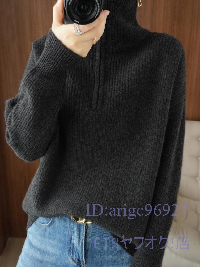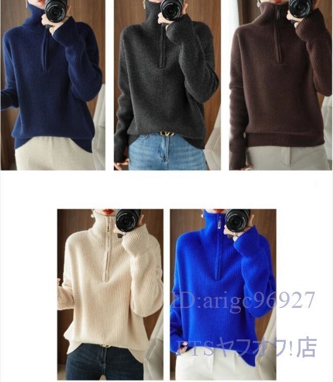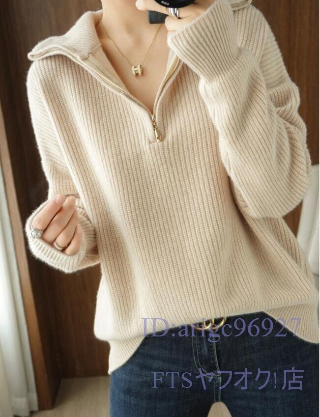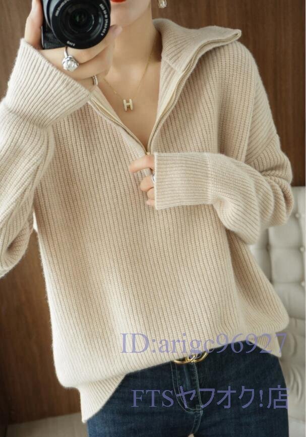 A0630☆新品M-XLサイズ 上質 ミンクカシミヤ混 ニットトップス ハイネック 厚地 着やせ ニットセーター 長袖 おしゃれ *ベージュ