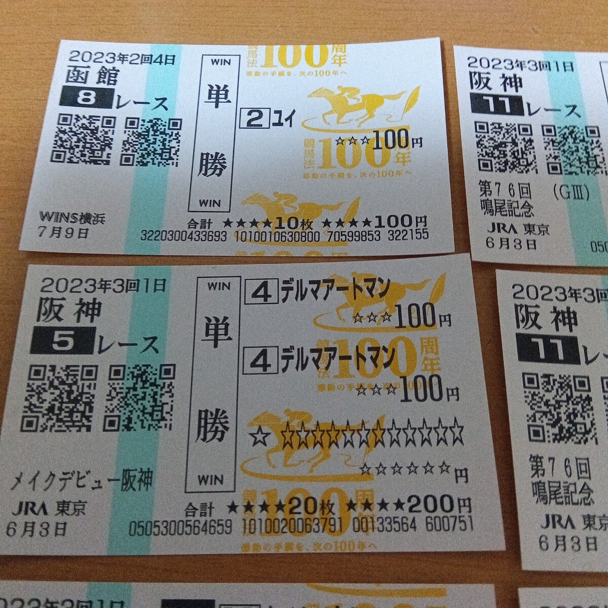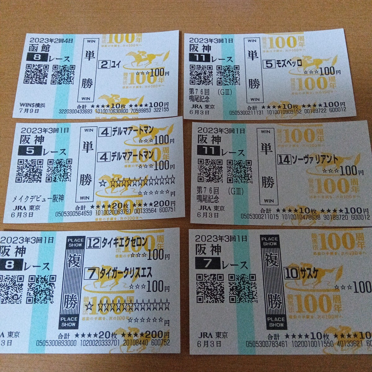 競馬 貴重な品 競馬法100周年記念スタンプJRA限定単勝馬券 複勝馬券 鳴尾記念 ユイ モズベッロ サスケ ソーヴァリアント 6枚セット