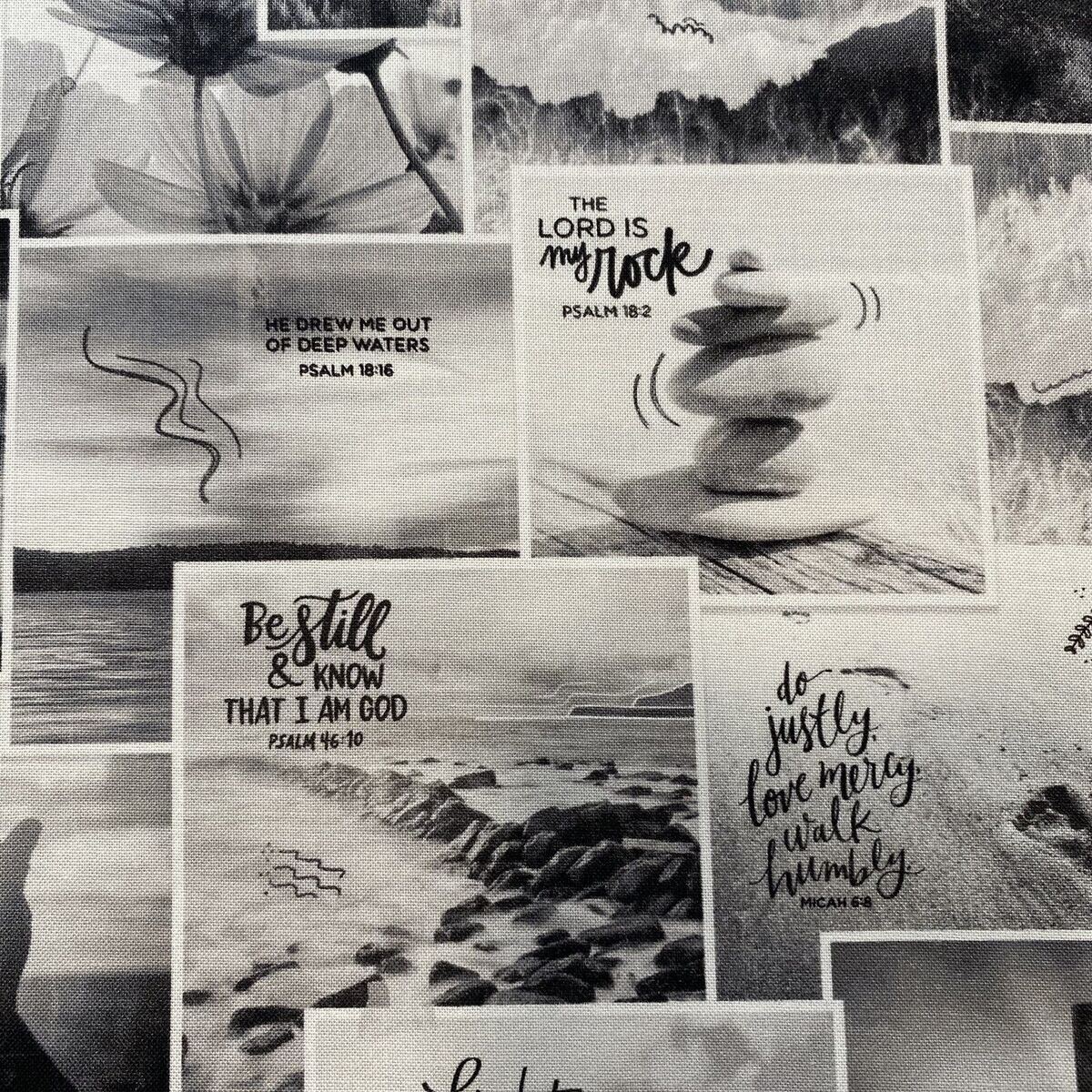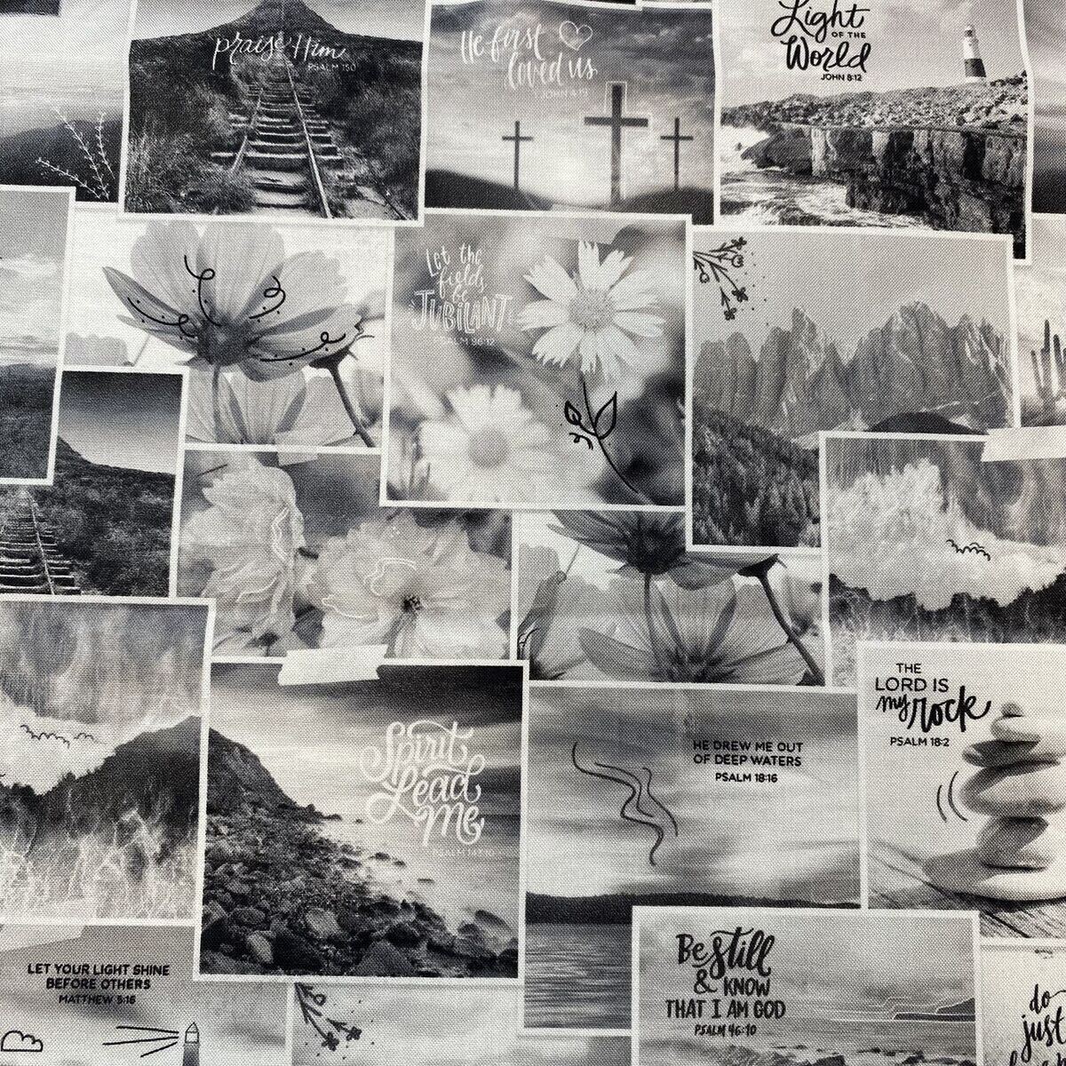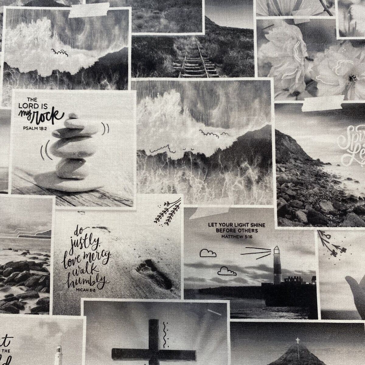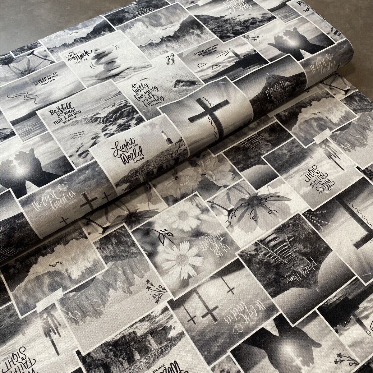 美しい写真がたくさん配置されたモノクロの素敵な生地です。