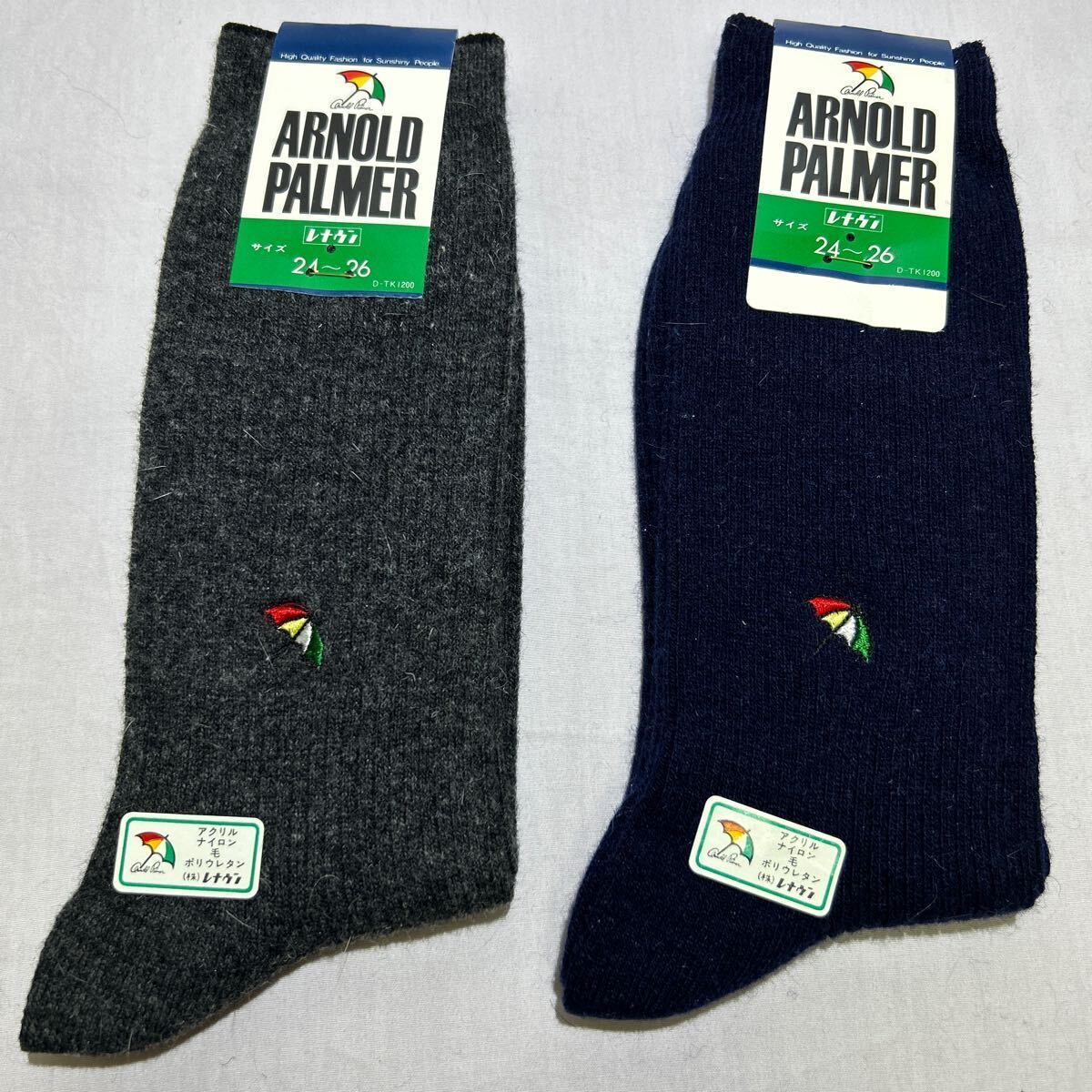 ★未使用品★24~26cm★ ARNOLD PALMER 靴下 アーノルドパーマー 刺繍 2足セット ロゴ ソックス レナウン メンズ 紳士 傘 (09156C