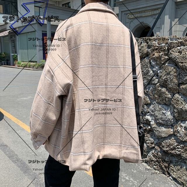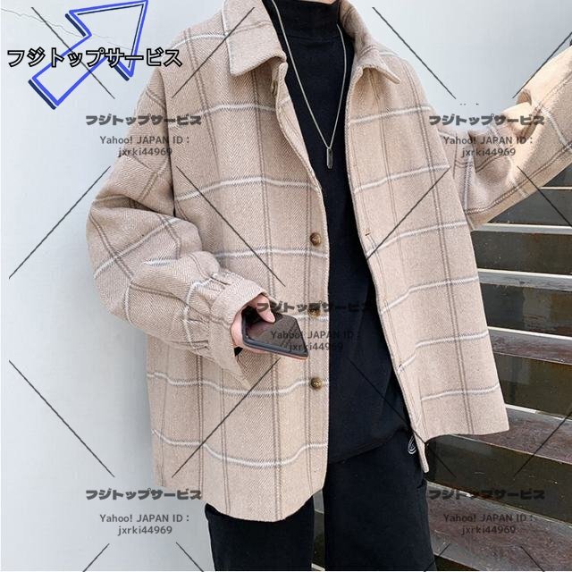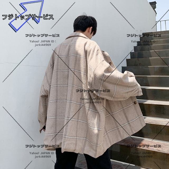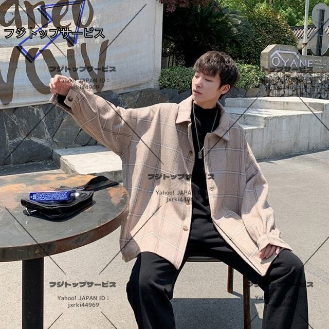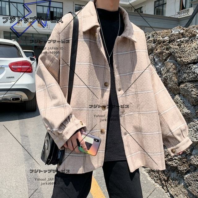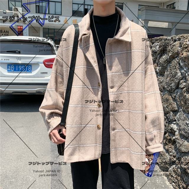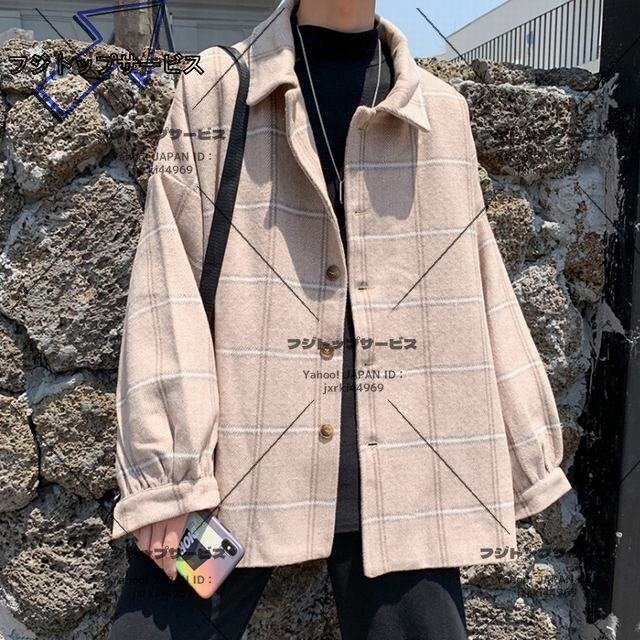 シャツジャケット メンズ アウター チェック柄起毛長袖 厚手 ユニセックス 秋 冬 カーキ L