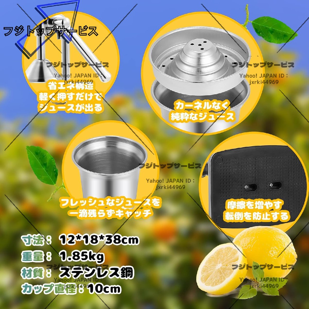 【専用受け皿】フルーツ生搾り器が専用受け皿が付いています。最後の一滴まで絞りきることができ、パルプが無駄なく使用できます。直径10㎝で、オレンジとレモンの絞りがオススメです。