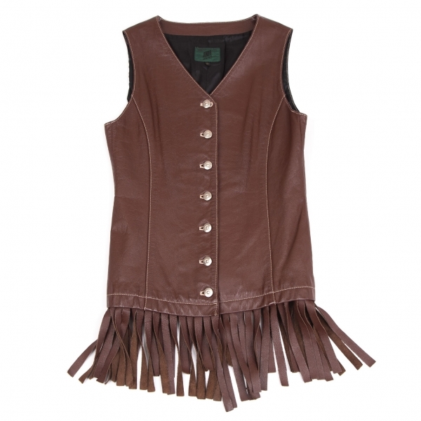 ジュニアゴルチエJUNIOR GAULTIER カウレザーフリンジベスト 茶40 |