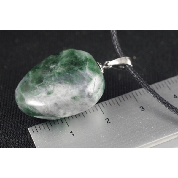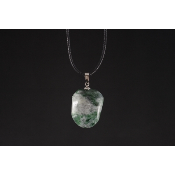 国石として指定された糸魚川産のヒスイ(翡翠)で濃淡のある緑色が混ざり合いきれいな斑模様が出ています。