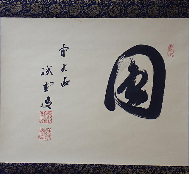 02243 前大徳寺 藤井誠堂 作 「圓」掛軸(共箱)茶道具(茶掛/紫野)です。