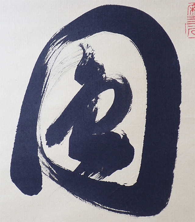 作品の右上に落款、左側にサイン・落款等がありました。