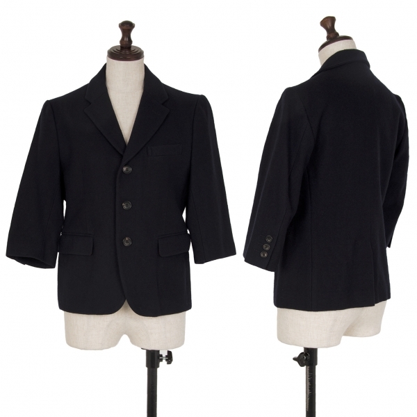 コムコム コムデギャルソンCOMME des GARCONS ウール七分袖ジャケット 紺S |