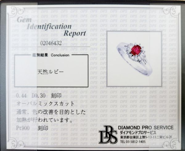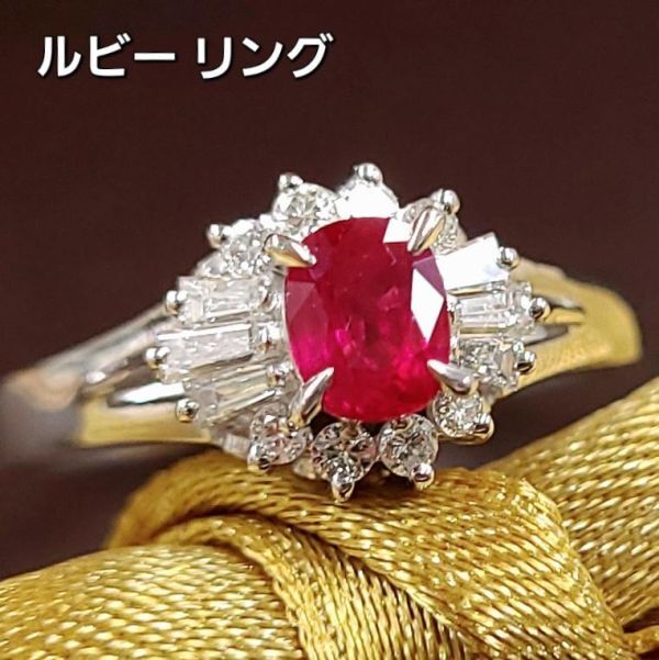【製造大卸☆最安値】情熱の赤!高品質!0.44ct 天然 ルビー 天然ダイヤモンド プラチナ PT900 リング【鑑別書付】