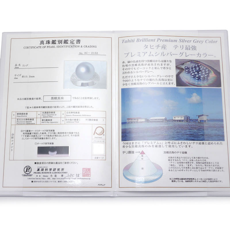 素材:Pt900(プラチナ)・黒蝶真珠13.2mm