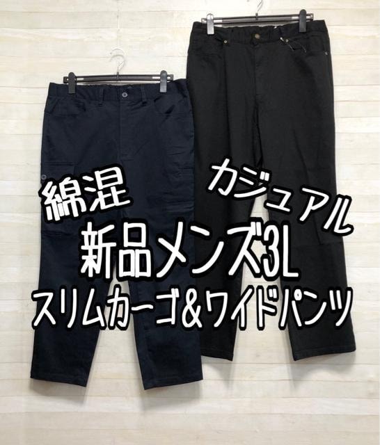 新品☆メンズ3L♪綿混カジュアルパンツ2本セット♪スリム&ワイド☆f902