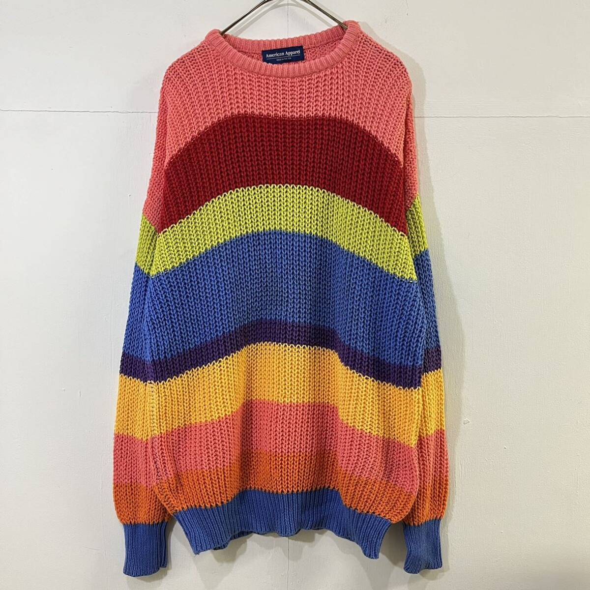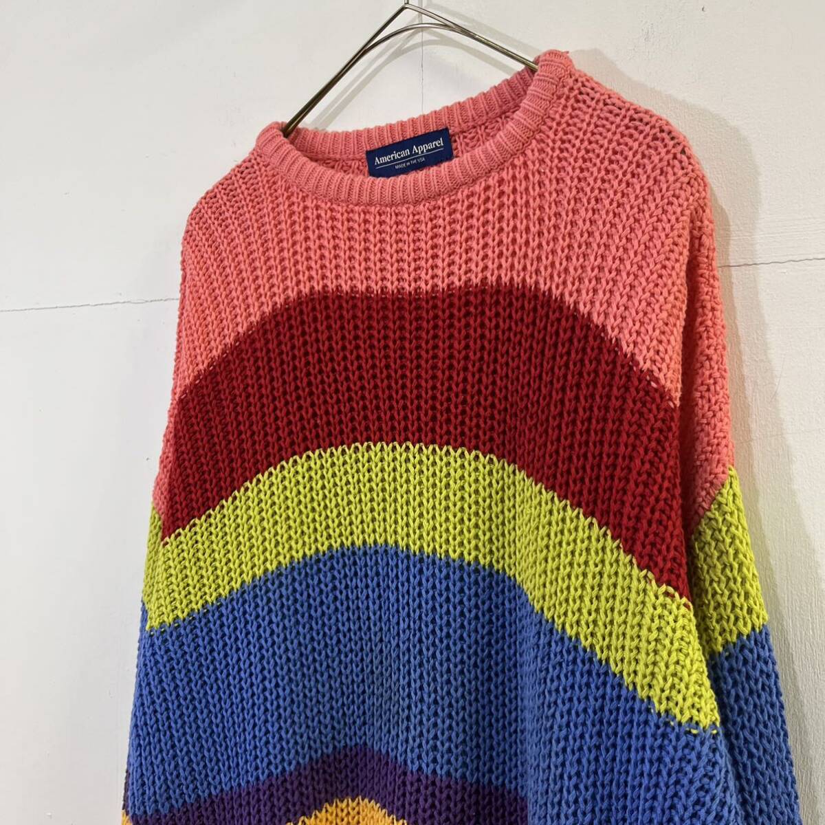 American Apparel アメリカ製 USA製 コットンニット ニットセーター マルチカラー 総柄 ボーダー アメリカアパレル【送料一律/同梱可能】Oの出品です。