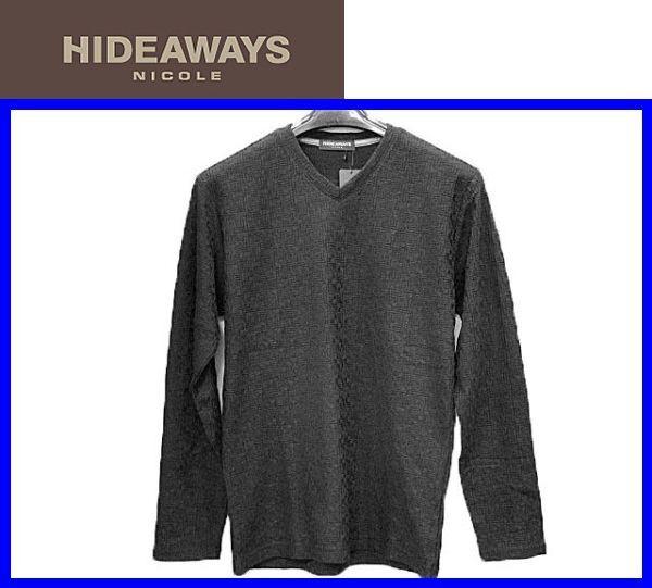 ■HIDEAWAYS by NICOLEニコル〓幾何学柄風ジャガード長袖VネックTシャツ■