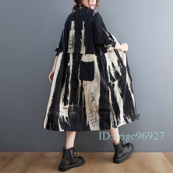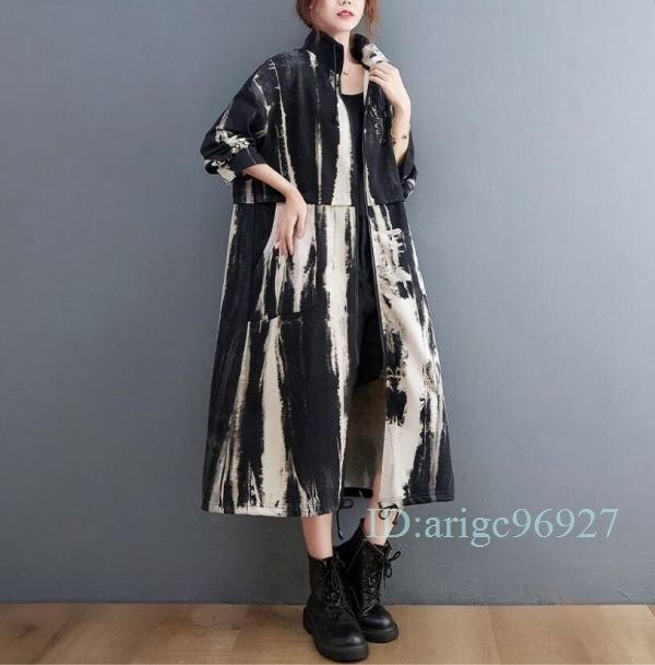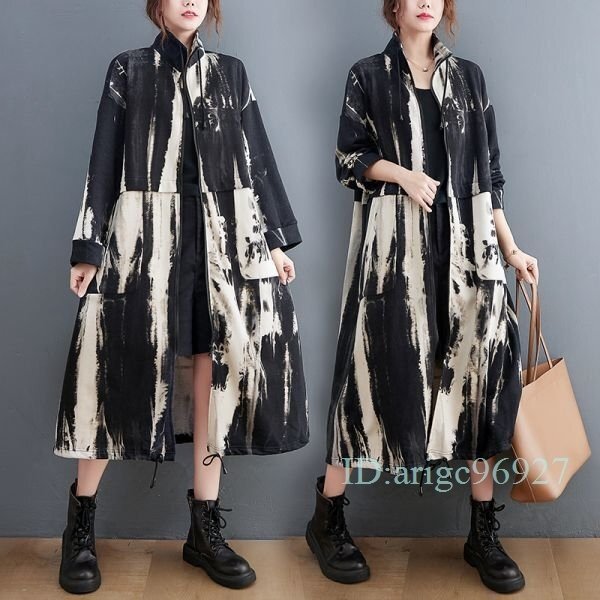 I808★秋 上質 オシャレ プリント柄 20304050代ロング丈トレンチコート アウター ゆったり 大きいサイズ