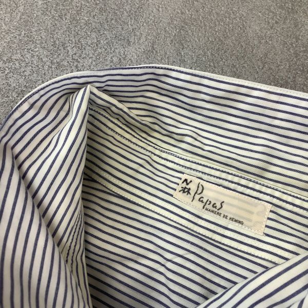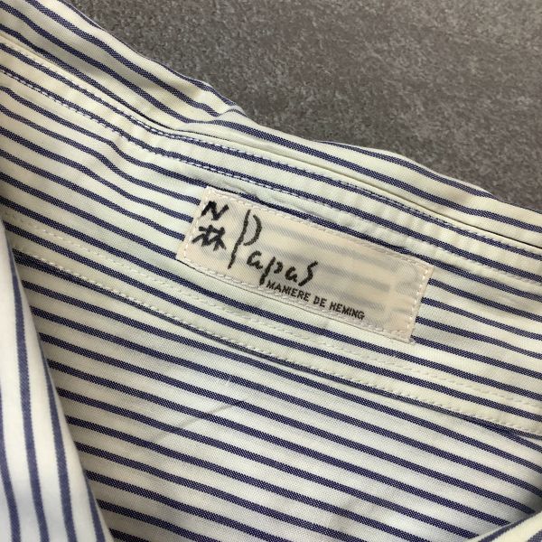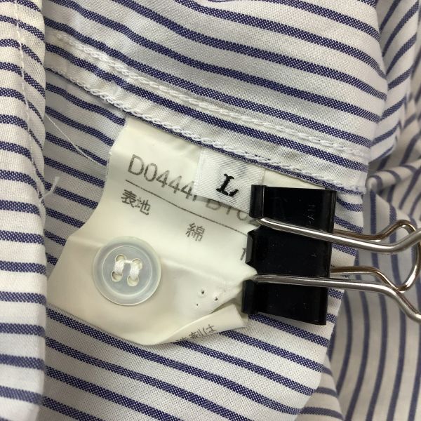 papas パパス ストライプ 長袖シャツ メンズ Lサイズ ブルー