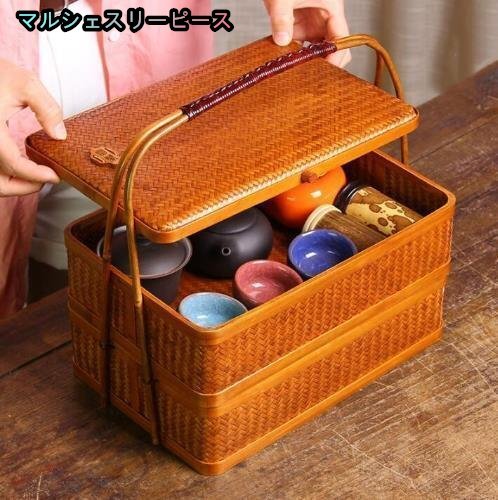 強力推薦★ 2層★茶道具 飯盒★職人手作 竹製 手作 茶器 收納 漆器 茶盒 茶箱