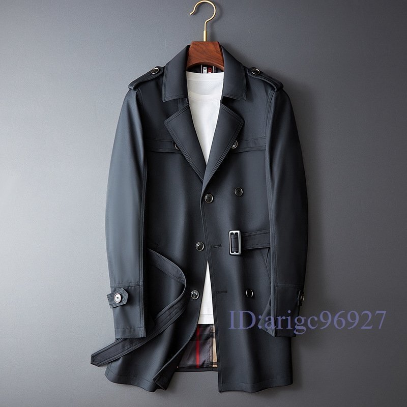 T329☆新品春秋メンズ ビジネスコート カジュアル コート チェスターコート ロング丈 アウター スプリングコート おしゃれ ネイビー L